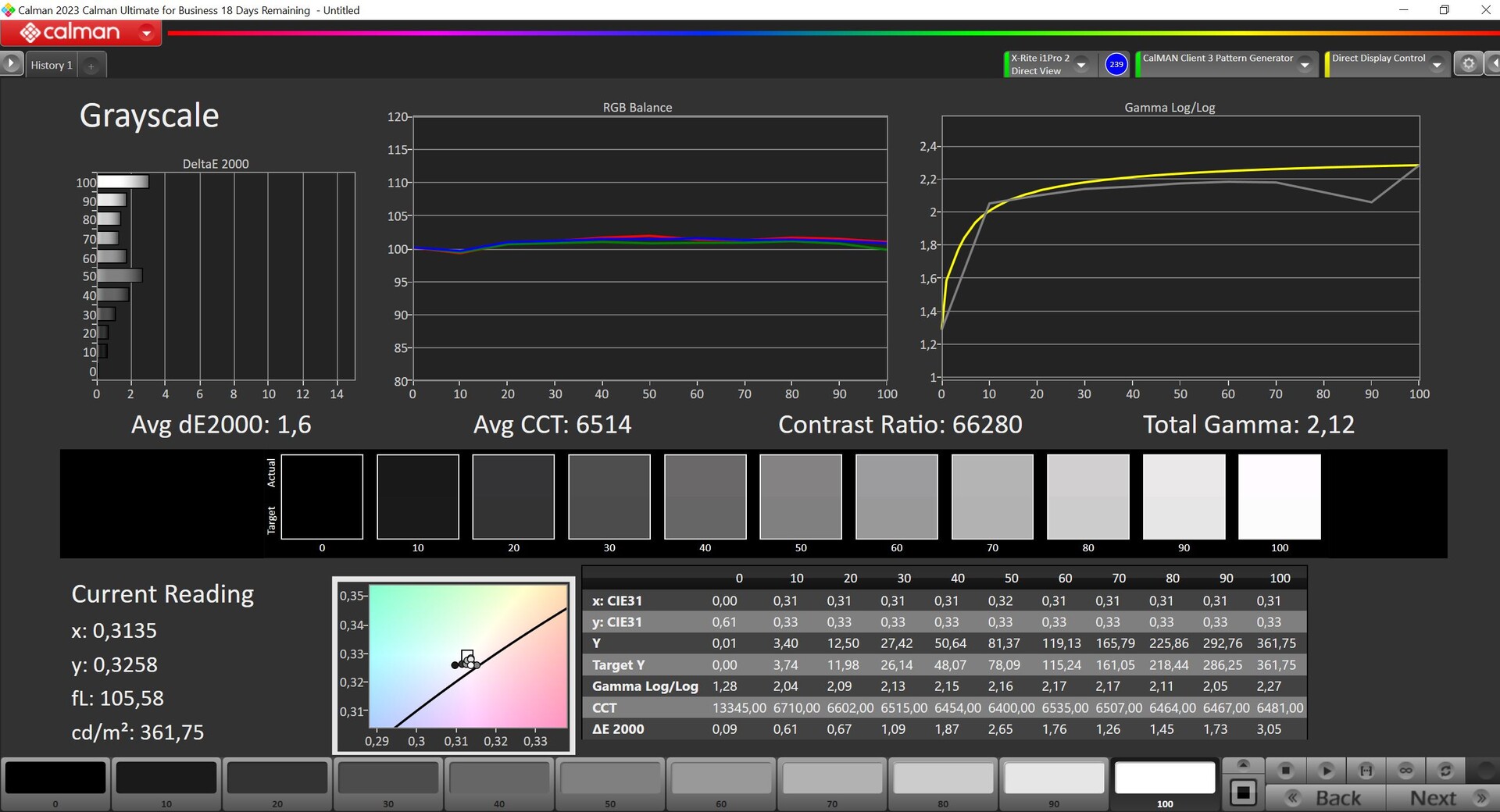 ΔE Greyscale Calman: 1.6 | ∀{0.09-98 Ø5}