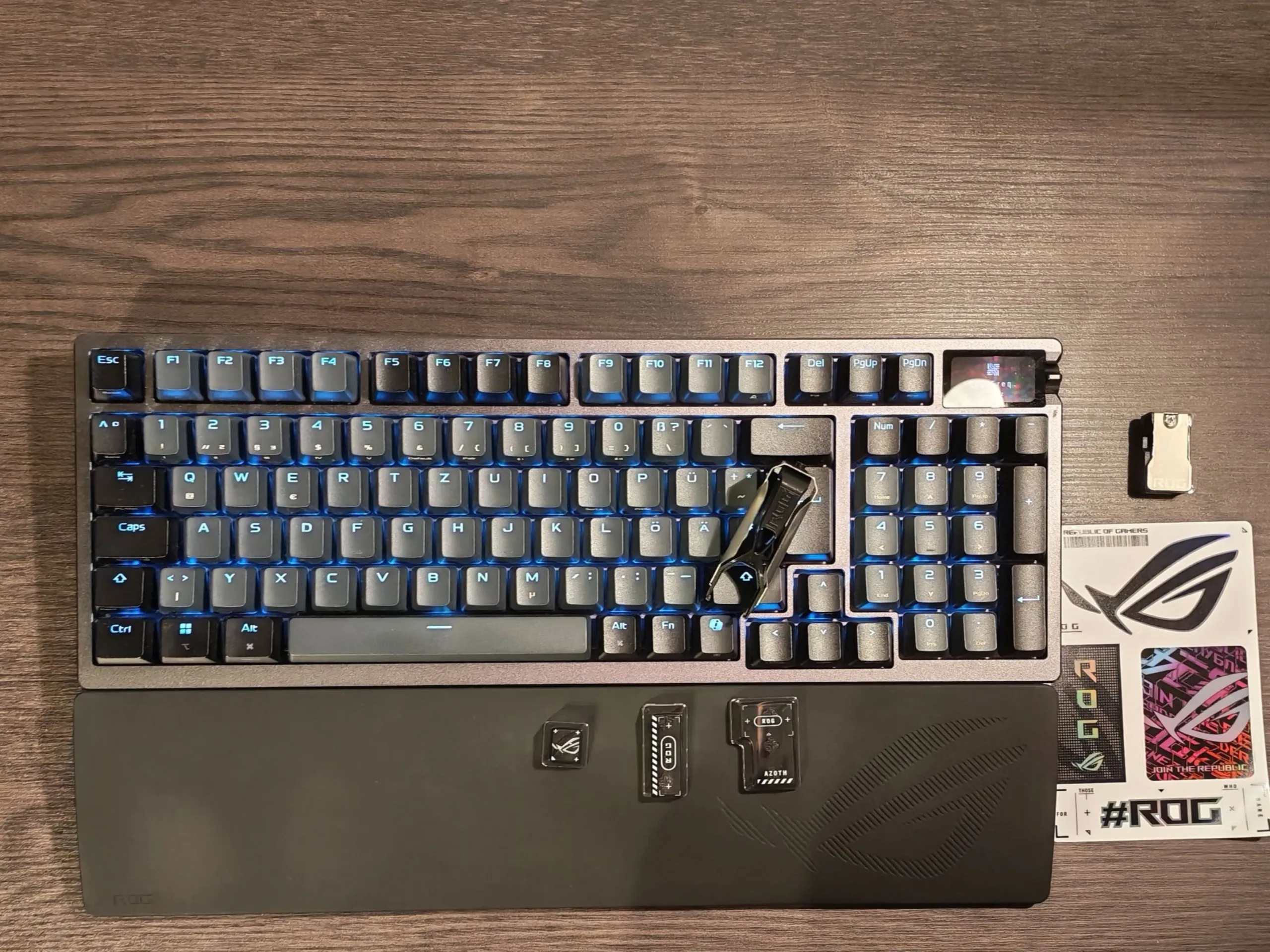 Asus kutuda bir bilek desteği, bir USB Type-C kablosu, bir USB adaptörü, USB alıcısı için bir uzatma kablosu, Copilot tuş kapağının yerini alacak bir kontrol tuş kapağı ve ROG düzeninde üç şeffaf ek tuş kapağı içeriyor. Ayrıca tuş kapaklarını ve anahtarları çıkarmak için aletler de var - bu iki alet birbirine klipslenebilir. Kurulum son derece basittir ve USB, Bluetooth veya kullanılmadığında klavyenin içinde saklanabilen birlikte verilen kablosuz alıcı aracılığıyla yapılabilir. Kapsamlı yapılandırma seçenekleri için bile herhangi bir yazılım kurulumu gerekmiyor - ancak bu konuda daha sonra bilgi vereceğiz.