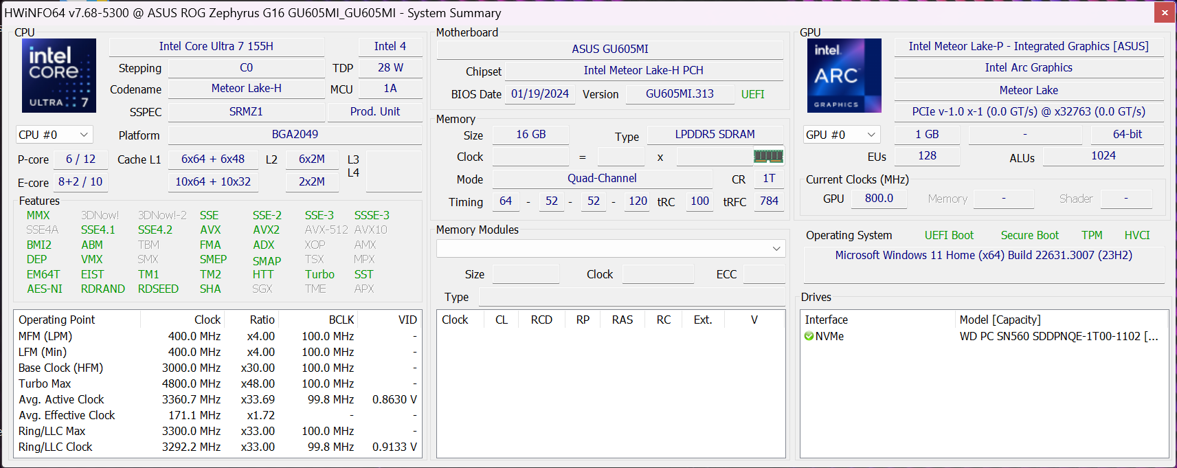 | Asus ROG Zephyrus G16 2024 GU605M | |