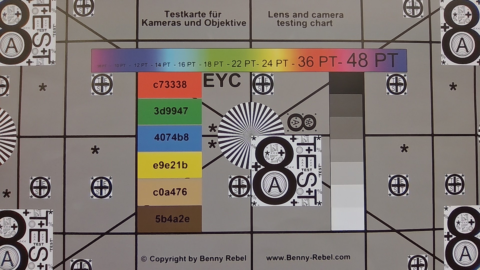 | Colorchecker dE 2000 * | 1.6 | 1.4 12% | 3.7 -131% | 2 -25% | 3.4 -113% | 3.04 -90% | 1.2 25% |