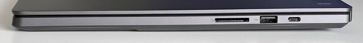 G16'nın sağ tarafında tam özellikli bir kart okuyucu bulunuyor ve takılan kartlar yaklaşık 1,2 cm dışarı çıkıyor. Referans kartımızla (Angelbird AV Pro V60) birlikte yaklaşık 80-90 MB/s aktarım hızlarına ulaştı, bu da test cihazının en alt sıralarda yer aldığı anlamına geliyor.