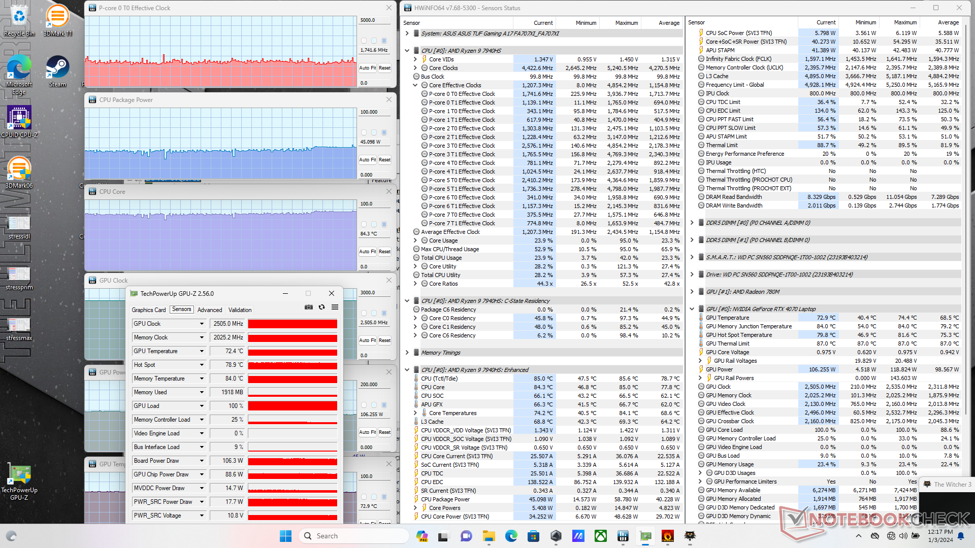 | Witcher 3 Stres (Turbo modu) | ~1.7 | 2505 | 84 | 73 |