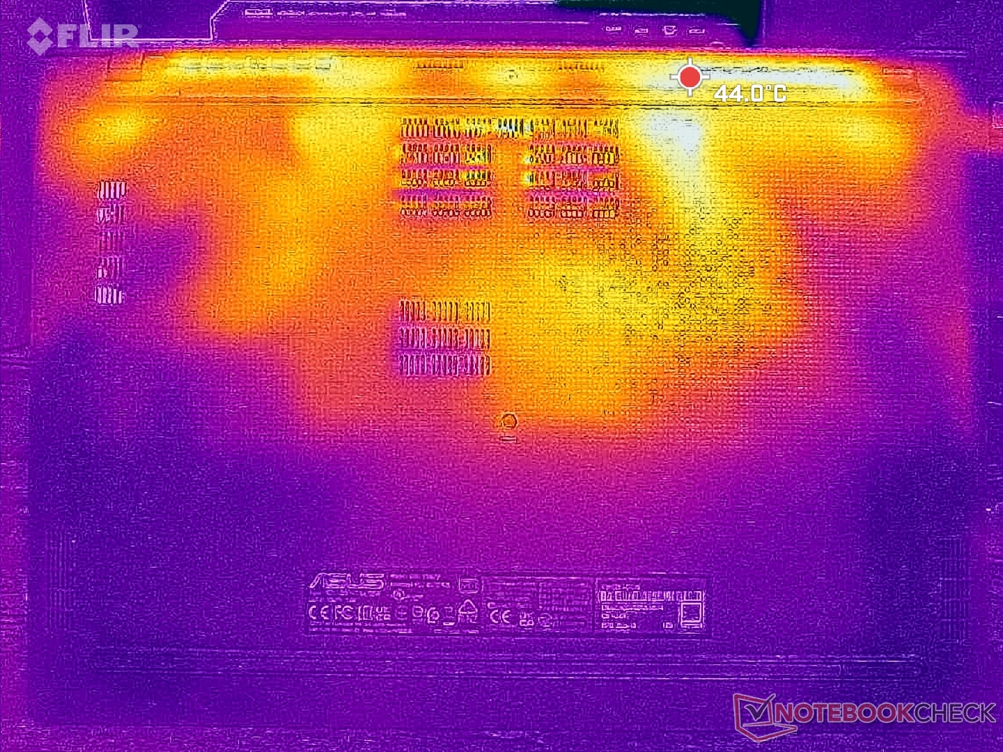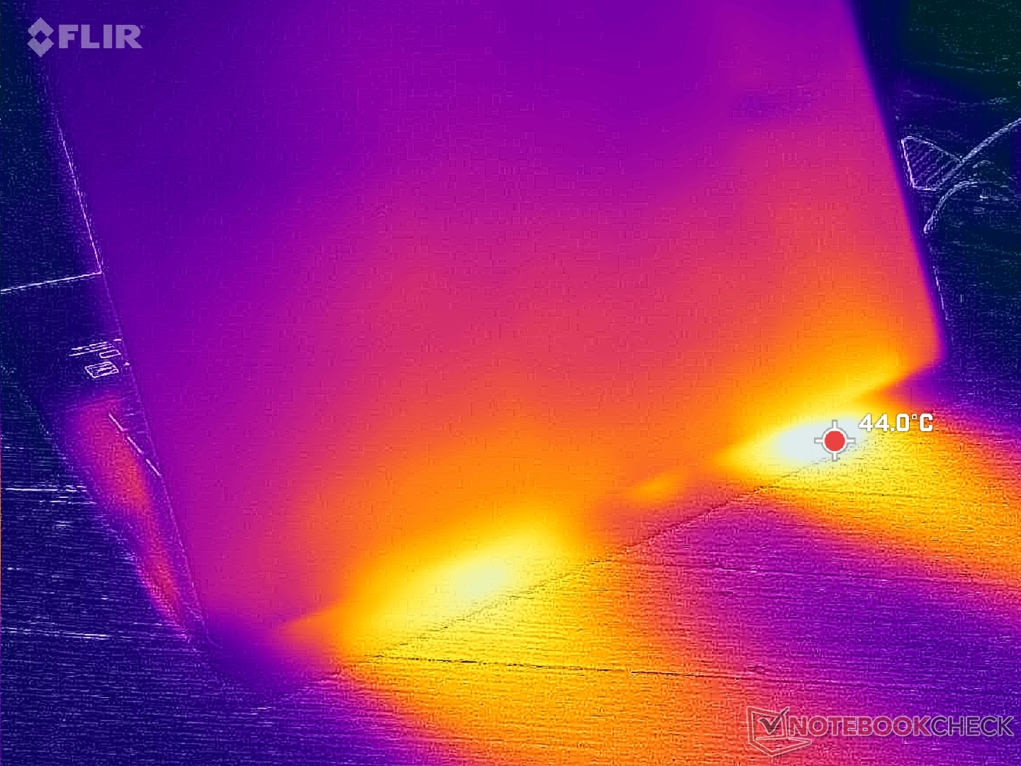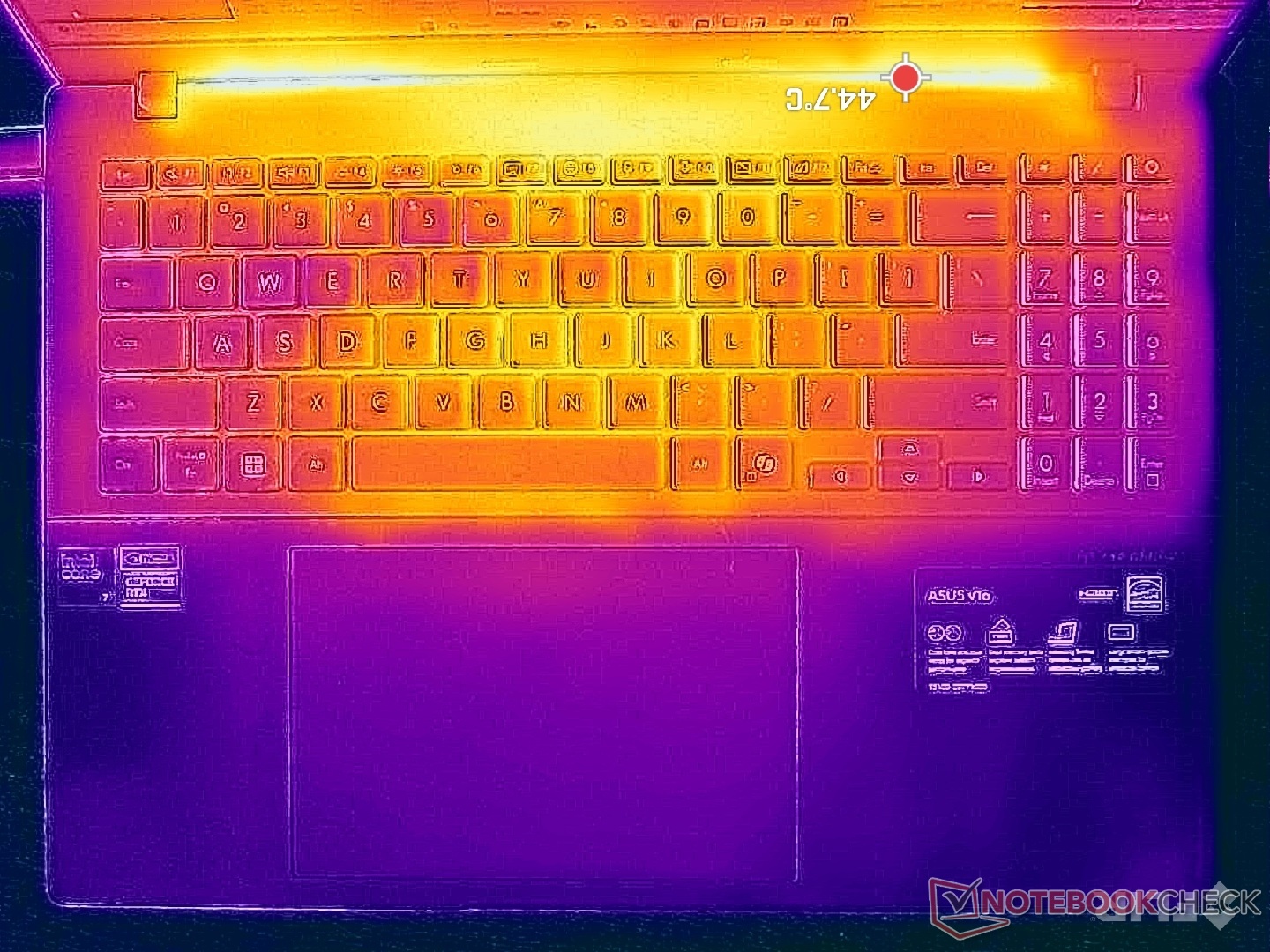 Sıcak noktalar, aşağıdaki sıcaklık haritalarında gösterildiği gibi 40 C'nin üzerine ulaşabilecekleri arka tarafa doğrudur. Avuç içi dayanakları, numpad ve WASD tuşları yazı yazmak veya oyun oynamak için daha serin kalacaktır.