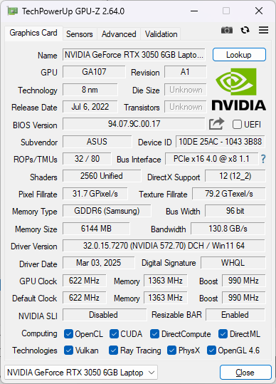 Test ünitemiz yukarıda bahsedilen CPU, 1200p 144 Hz IPS ekran ve fiyatları 1000 doların altında tutmak için eski 6 GB GeForce RTX 3050 ile birlikte geliyor. Diğer SKU'lar bunun yerine RTX 4050 ile birlikte gönderilebilir.