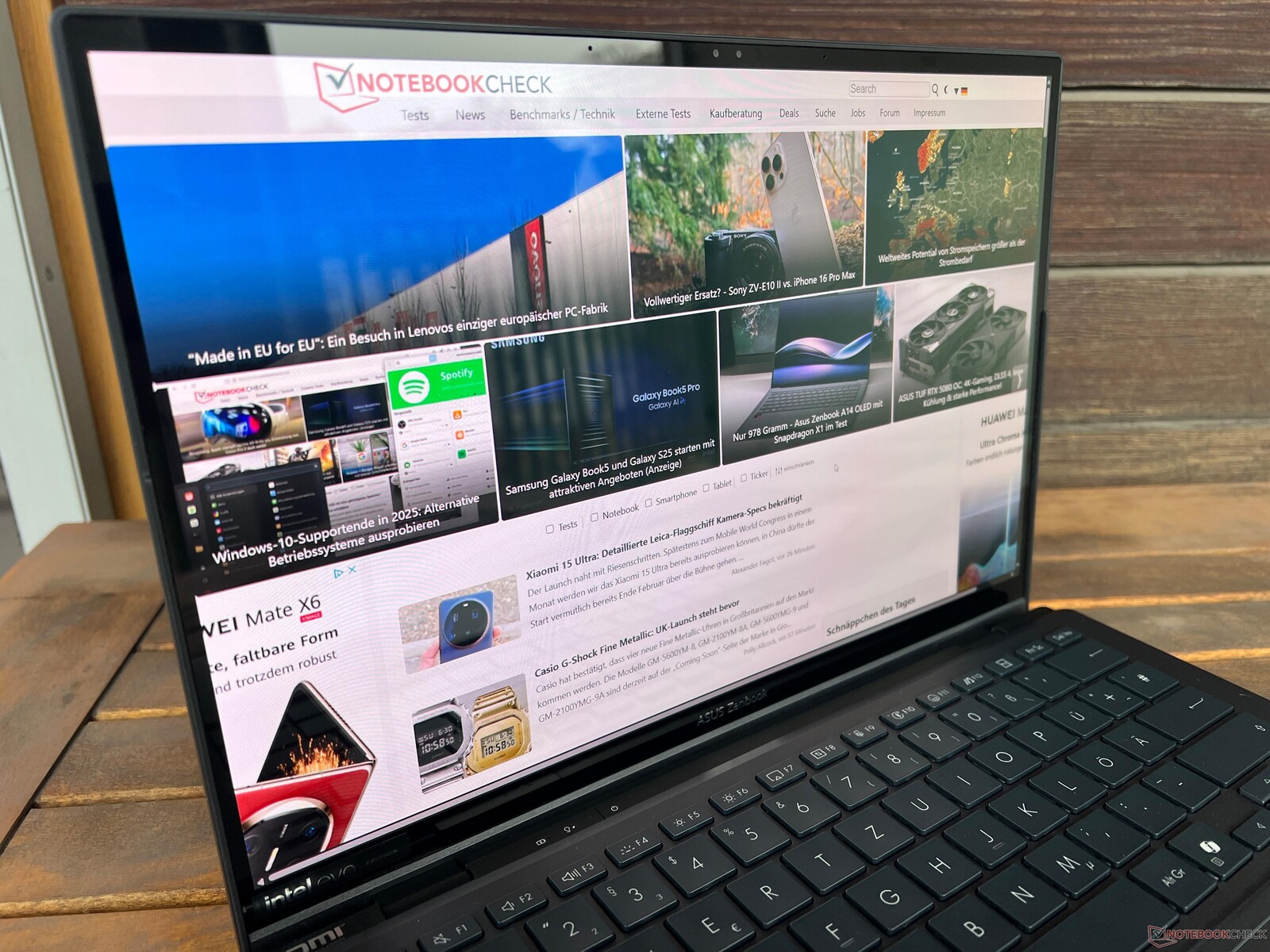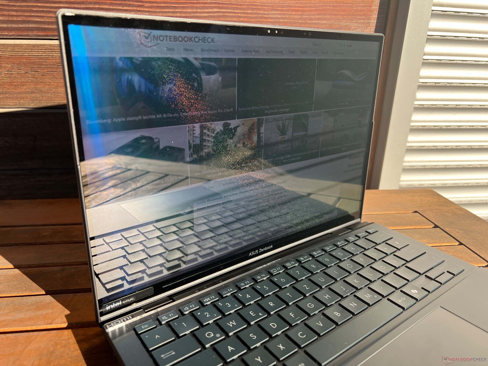 Zenbook Duo, iki adet aynı 14 inç OLED panel ile donatılmıştır, bu nedenle her iki ekranla da sorunsuz bir şekilde çalışmak mümkündür (aynı görüntü kalitesi, pencereleri taşırken ölçekleme sorunu yok). Geçen yılki test cihazında 2.8K çözünürlüğe ve 120 Hz frekansa sahip iki yüksek çözünürlüklü OLED bulunurken, mevcut test yapılandırmamızda 60 Hz'de iki full-HD OLED bulunuyor. Bunun dışında diğer özellikler aynı. Ekranların parlaklığı bir sensör aracılığıyla otomatik olarak ayarlanabiliyor ancak renk sıcaklığı ayarlanamıyor.