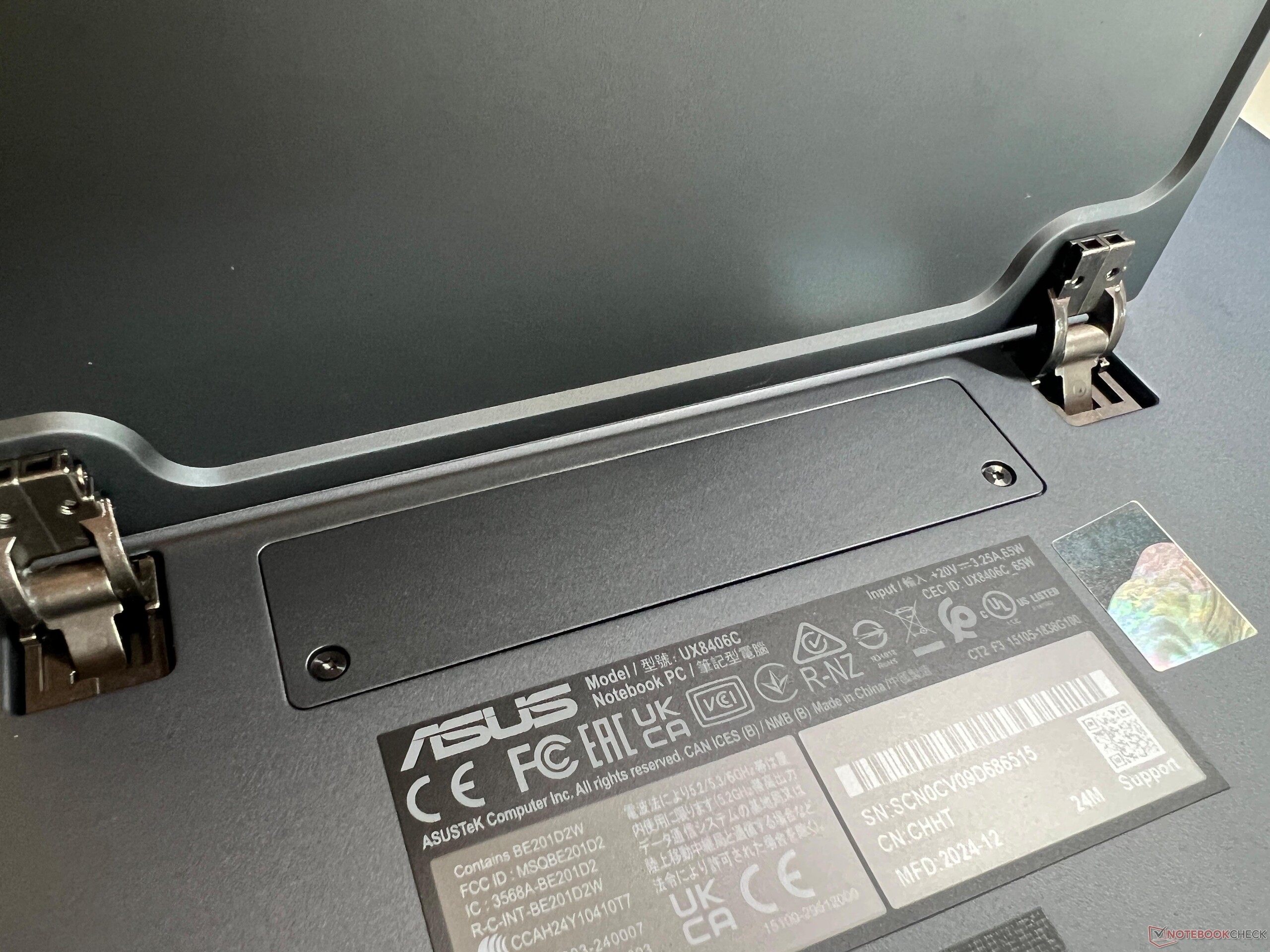 Asus, dizüstü bilgisayarın bağlantıları konusunda eleştirilerimizi dikkate aldı ve şimdi her iki tarafta da bir USB-C bağlantı noktası (Thunderbolt 4) olduğu için düzenlerini değiştirdi. Buna ek olarak, artık modern bir W-Fi 7 modülü kullanıyor ve Asus'un referans yönlendiricisini kullanarak yaptığımız test sırasında aktarım hızları harikaydı. 1080p web kamerası işini yapıyor ve gelişmiş Studio Efektleri de destekleniyor. Ancak resmi olarak yeni Arrow Lake cihazları, NPU çok zayıf olduğu için Copilot+ cihazları değildir. Studio Effects'e ek olarak Zenbook, diğer şeylerin yanı sıra Windows live altyazılarını da destekliyor. Ancak ikinci ekran nedeniyle tüm bileşenlere erişmek daha zor. Kasayı daha fazla ayırmadan önce alt taraftaki küçük bir kapakçık aracılığıyla iki bağlantıyı serbest bırakmanız gerekiyor. İçinde teorik olarak değiştirilebilen bir M.2 2280 SSD takılıdır, ancak bunun için anten kablolarını, bağlantı kablolarını ve anakartın bir kısmını çıkarmanız gerekir.