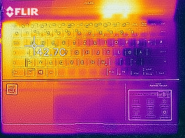 Asus Cabrio'nun kasası yük altında 41 ° C'ye (~ 106 ° F) kadar ısınır. Bu nedenle, örneğin kucağında sorunsuz olarak kullanılabilecek kadar sıcak. Bir saatlik stres testimiz sırasında, savunma fan davranışı çekirdek sıcaklıkların 90 ° C'nin (~ 194 ° F) üzerine çıkmasına neden oldu başlangıçta. Fanlar devreye girdiğinde, sıcaklıklar ortalama 80 ° C (~ 176 ° F) değerine düştü. Sistem yine de nispeten sorunsuz bir şekilde çalıştırılabilir, bu yüzden kullanıcılar ZenBook Flip 14 UX463FA kullanırken sıcaklıkların çok yüksek olması nedeniyle kısıtlamalar beklememelidir.