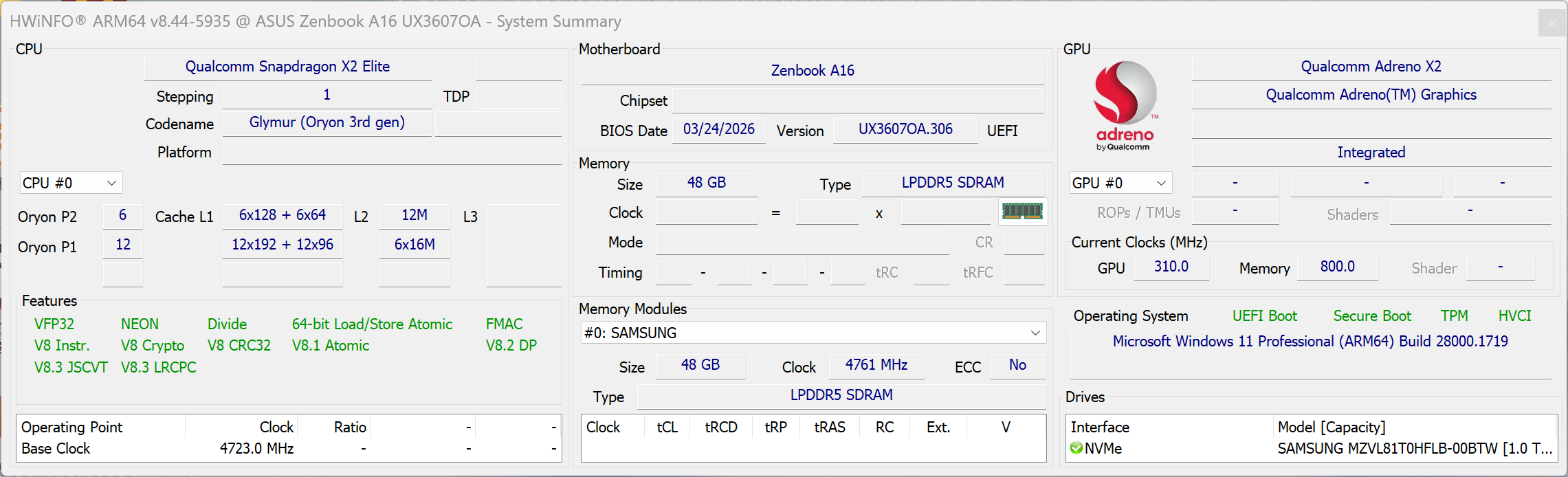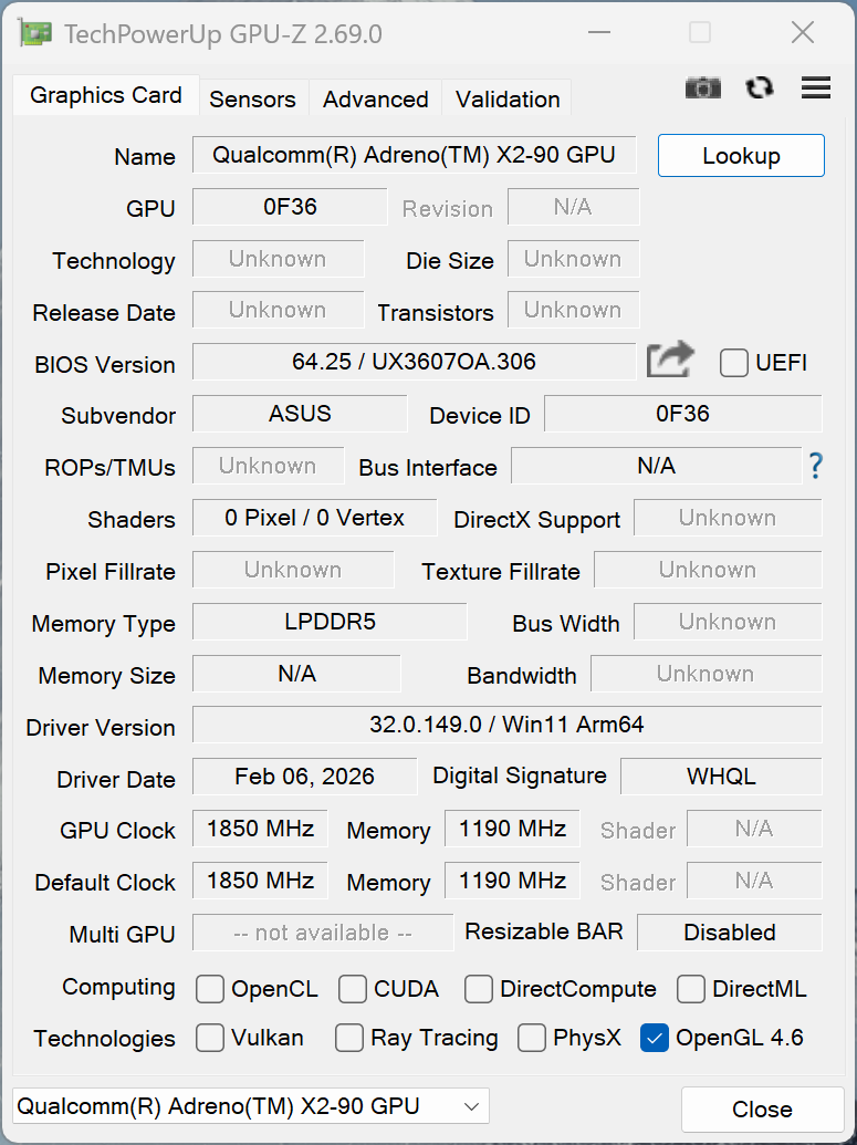 | Asus Zenbook A16 UX3607 Qualcomm Snapdragon X2 Elite Extreme X2E-94-100 ⎘ Qualcomm Adreno X2-90 ⎘ 48 GB Bellek, 1000 GB SSD | 1.2 kg | 16.5 mm | 16.00" 2880x1800 212 PPI OLED | ||