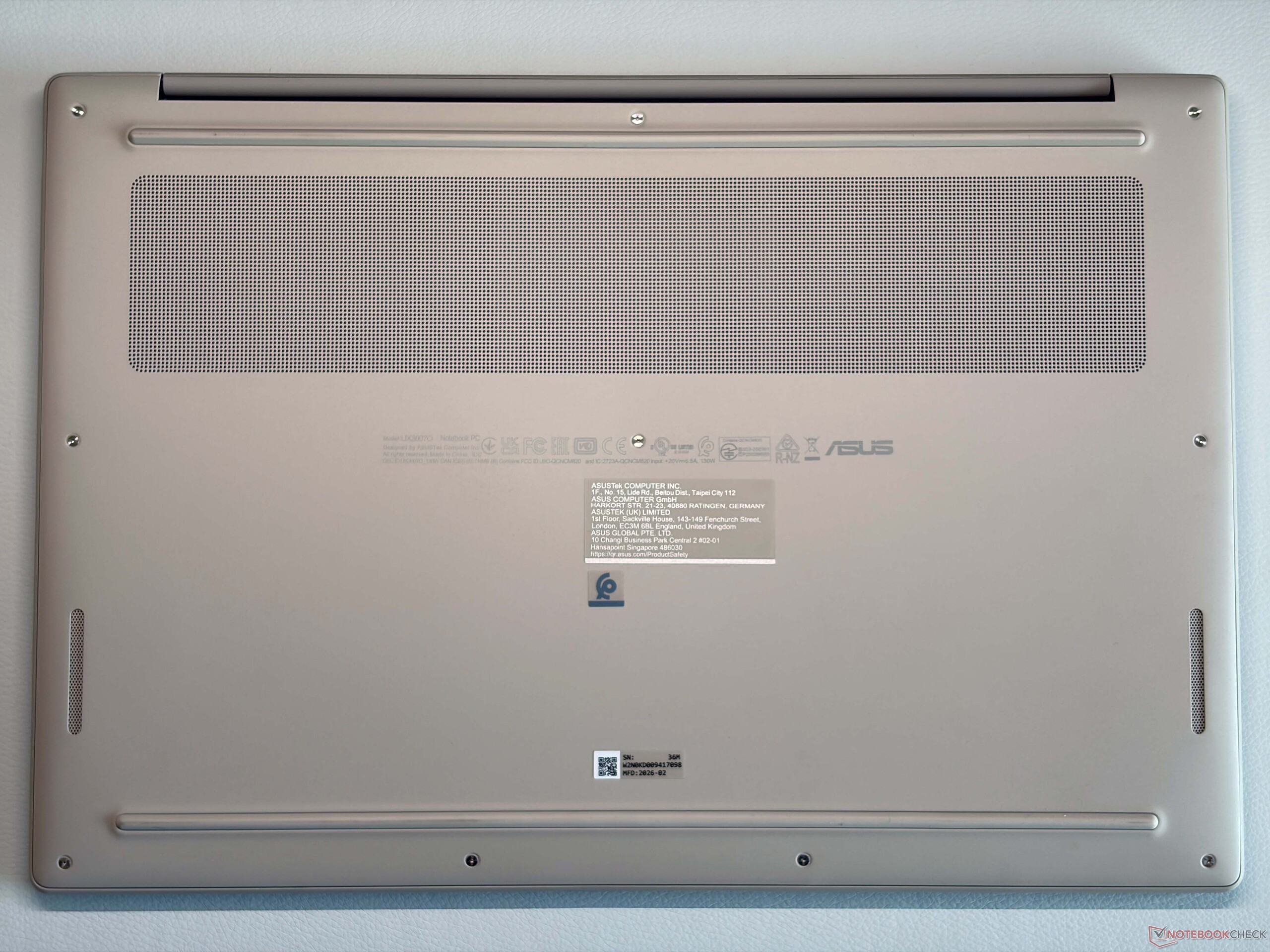 Kasa tasarımı daha küçük olan Zenbook A14'ü takip ediyor ve 16 inç Zenbook A16 da tanıdık renkler olan İzlanda Grisi veya Zabriskie Beji renklerinde sunuluyor. AMD destekli Zenbook S16 ile karşılaştırıldığında, ana ünite daha yuvarlak ve genel ağırlık farkı 300 gramdan fazla olarak çok belirgin. Asus, kasa yapısı için seralüminyum malzemesini kullanıyor ve A16 çok hafif bir cihaz olmasına rağmen, hala çok sağlam ve sağlam ve hatta daha küçük Zenbook A14'e (1 kg'ın altında) kıyasla biraz daha yoğun hissediyor. Gıcırdama sesi yok ve ana ünitenin stabilitesi mükemmel. Kapak biraz daha esnek ama bu sorun değil. Menteşelerin daha iyi bir kalibrasyonunu görmek isterdik (maks. açılma açısı ~135 derece), çünkü kapak biraz sallanıyor.