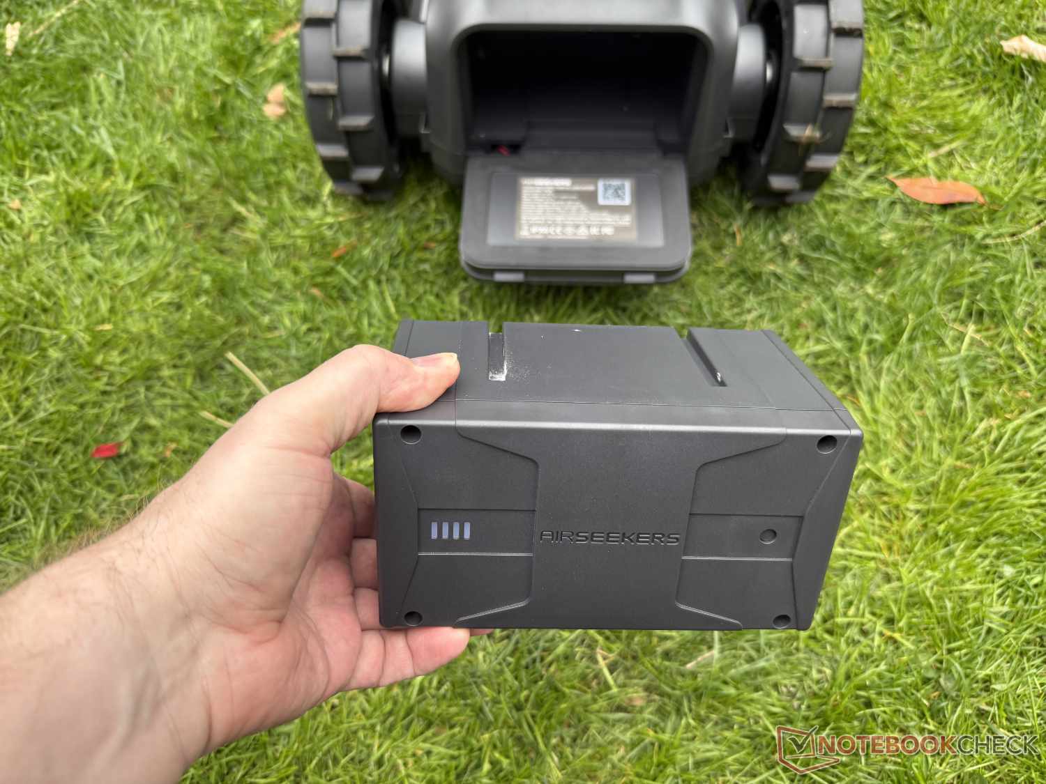 Üretici, devasa 15 Ah akü ile üç saatlik bir çalışma süresi vaat ediyor. Pratikte Airseekers Tron, RTK navigasyonu ve standart ayarlarla yaklaşık 350 metrekare biçerek bu süreyi aştı. Teorik olarak, biçmeden ve küçük bir sistemle sık sık konum değiştirmeseydi daha da fazla alan mümkün olabilirdi.