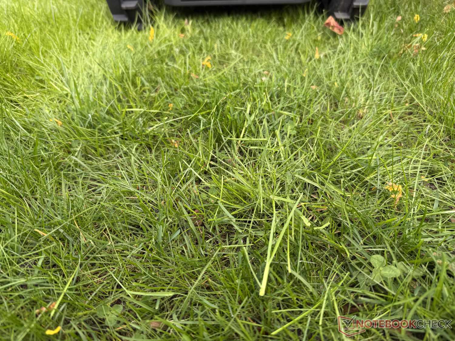 Ancak, üretici tarafından vaat edilen malçlama, pratikte yalnızca sınırlı bir ölçüde işe yaradı. Çimlerin üzerinde çok sayıda uzun sap kaldı. Bunu istemiyorsanız, ya önce yüksek bir çimi önceden biçmelisiniz (diğer modellerde olduğu gibi) ya da önemli kesme yüksekliğini 9 cm'den kademeli olarak azaltmalısınız.