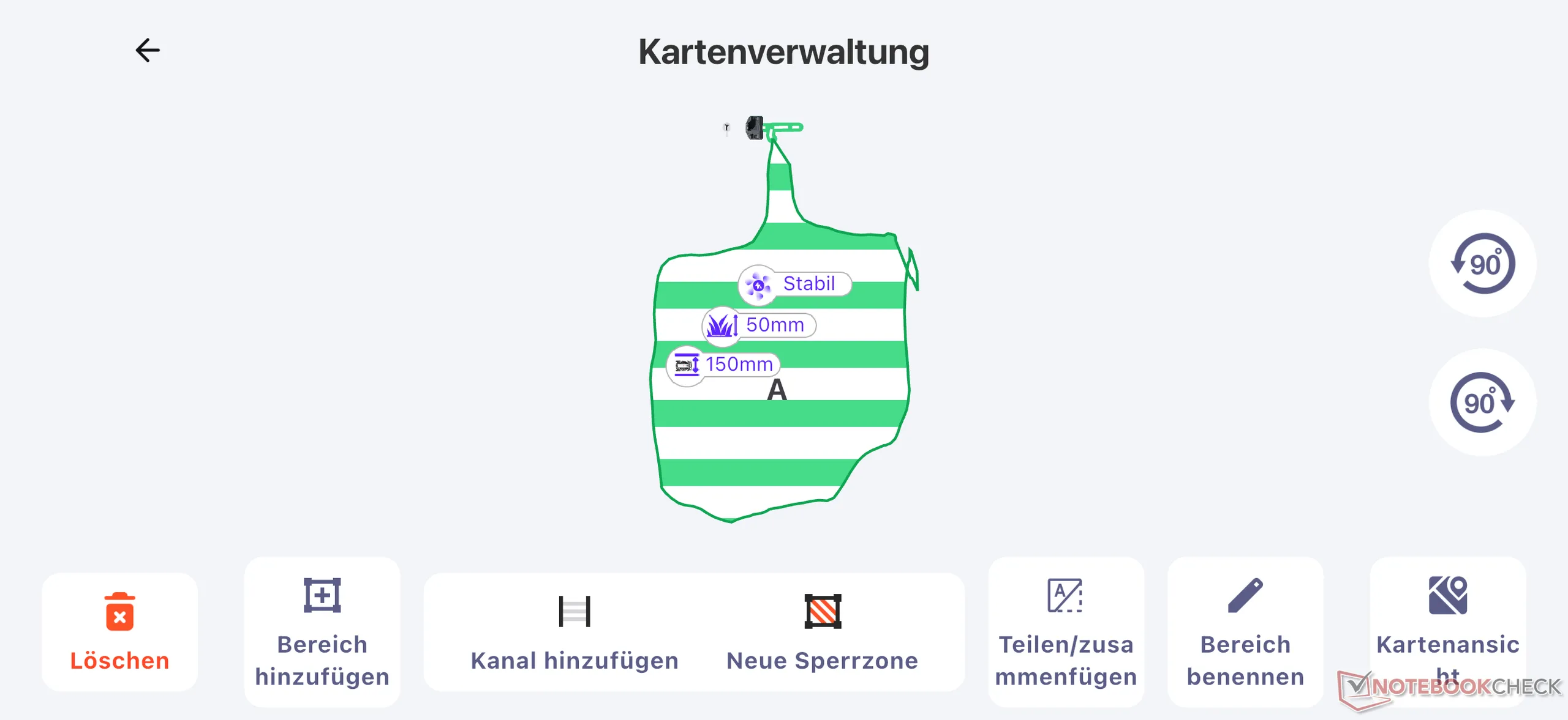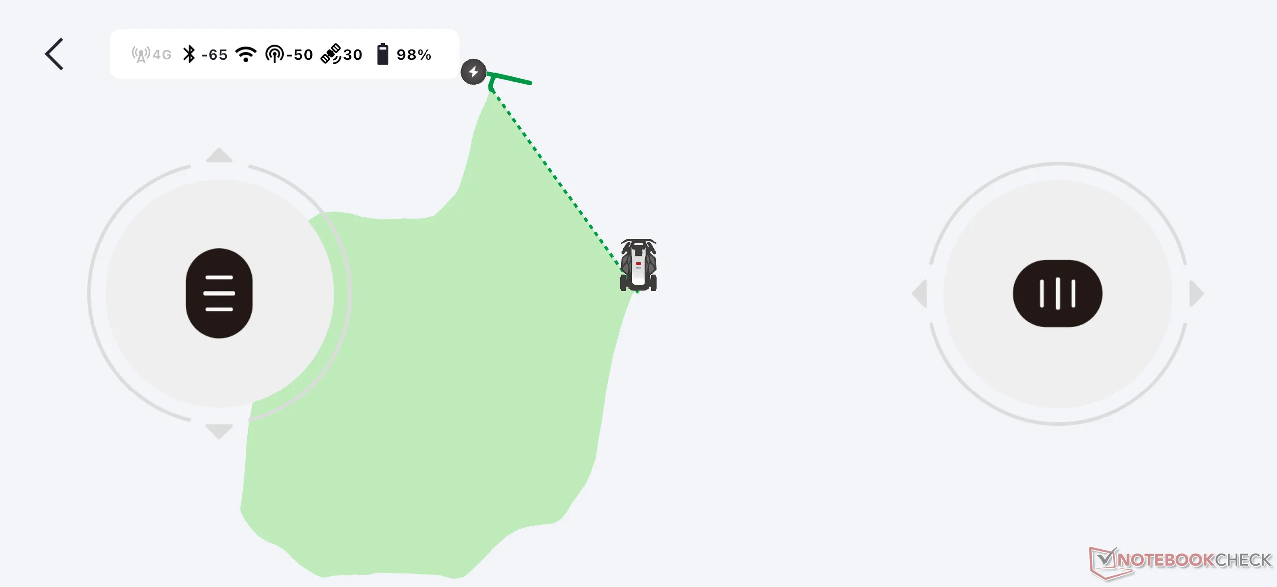 Bunu zorunlu haritalama turu takip eder. Bu, ekrandaki iki sanal kumanda kolunu kullanarak robot çim biçme makinesinin çimin kenarı boyunca bir kez manevra yapmasını içeriyor. Ne yazık ki robot, akıllı telefonun dokunmatik ekranındaki girdilere çok hassas tepki veriyor. Bu, çok hızlı sürüş veya çok keskin dönüşler gibi aşırı tepkilere yol açabilir ve bu da harita doğruluğuna zarar verir.