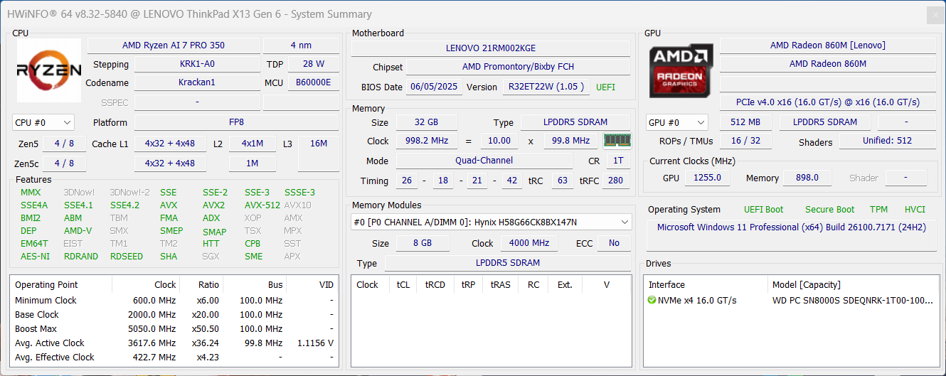 | Lenovo ThinkPad X13 G6 AMD AMD Ryzen AI 7 PRO 350 ⎘ AMD Radeon 860M ⎘ 32 GB Bellek, 1024 GB SSD | Amazon: 1. $769.99 Lenovo Thinkpad E14 G6 Busin... 2. $1,150.00 Lenovo ThinkPad P14s Gen 5 A... 3. $999.99 Lenovo ThinkPad T14 Business... Liste fiyatı: 1855€ | 1.1 kg | 13 mm | 13.30" 1920x1200 170 PPI IPS | |