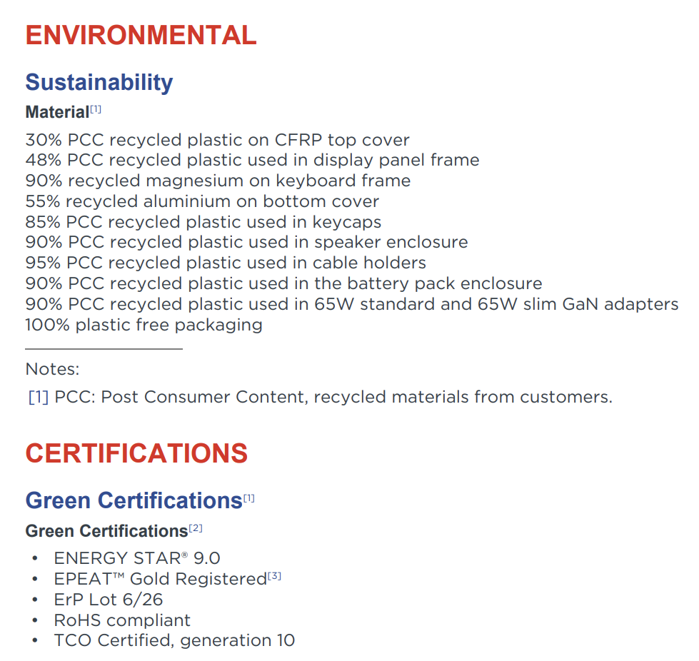 ThinkPad X13 G6, Energy Star da dahil olmak üzere çeşitli çevre standartlarını karşılar ve Lenovo, cihazın karbon ayak izi ve geri dönüştürülmüş malzemelerin kullanımı hakkında kapsamlı bilgi sağlar. Ambalaj tamamen geri dönüştürülebilir ve plastik içermez.
