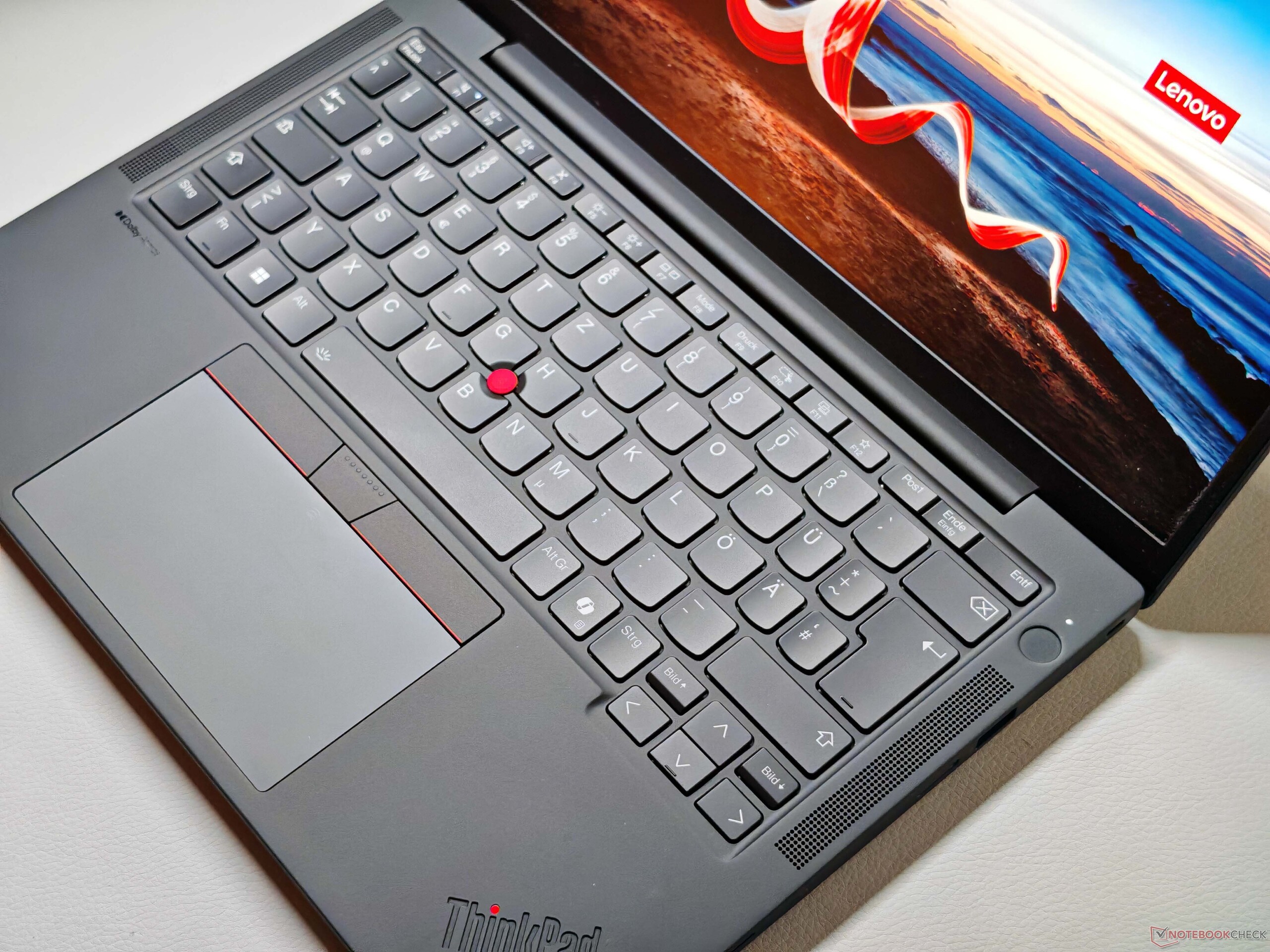 Arkadan aydınlatmalı klavye çoğu tuş için 1,5 mm hareket mesafesi sunarken, G, H ve B tuşları (TrackPoint'in yanında yer alır) ve işlev tuşları yalnızca 1,35 mm hareket mesafesi sağlar. Genel olarak, yazma deneyimi modern ThinkPad standartlarına göre bile sadece ortalama ve artık 2018 gibi eski modellerle gerçekten karşılaştırılabilir değil ThinkPad X1 Carbon G6. Tuşlara basış hassas, ancak genel yazma hissi özellikle rahat değil.
