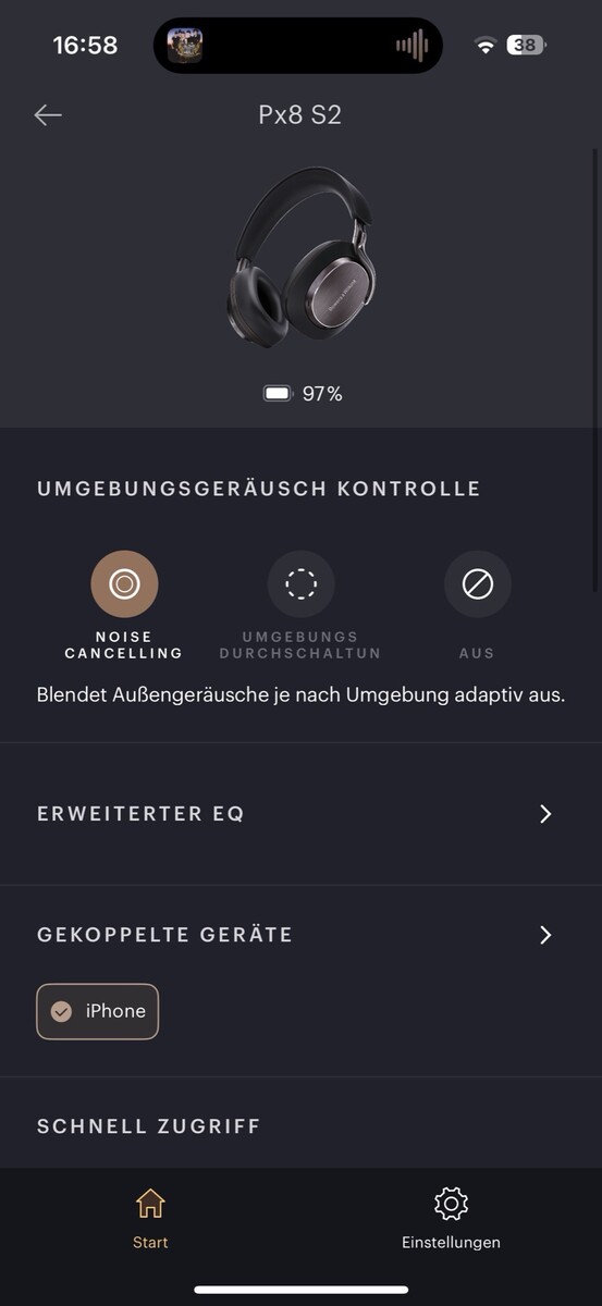 Bowers & Wilkins Music uygulaması bağlı cihazları yönetmeyi kolaylaştırıyor. Ayrıca basit bir beş bantlı ekolayzıra, ürün yazılımı güncellemelerine ve ANC kontrollerine erişim sunuyor ve hatta müzik akışı hizmetlerini doğrudan entegre ediyor. B&W'nin kullanıcının konumuna göre ANC veya şeffaflığı otomatik olarak ayarlamak gibi daha akıllı işlevler içermemesi üzücü.