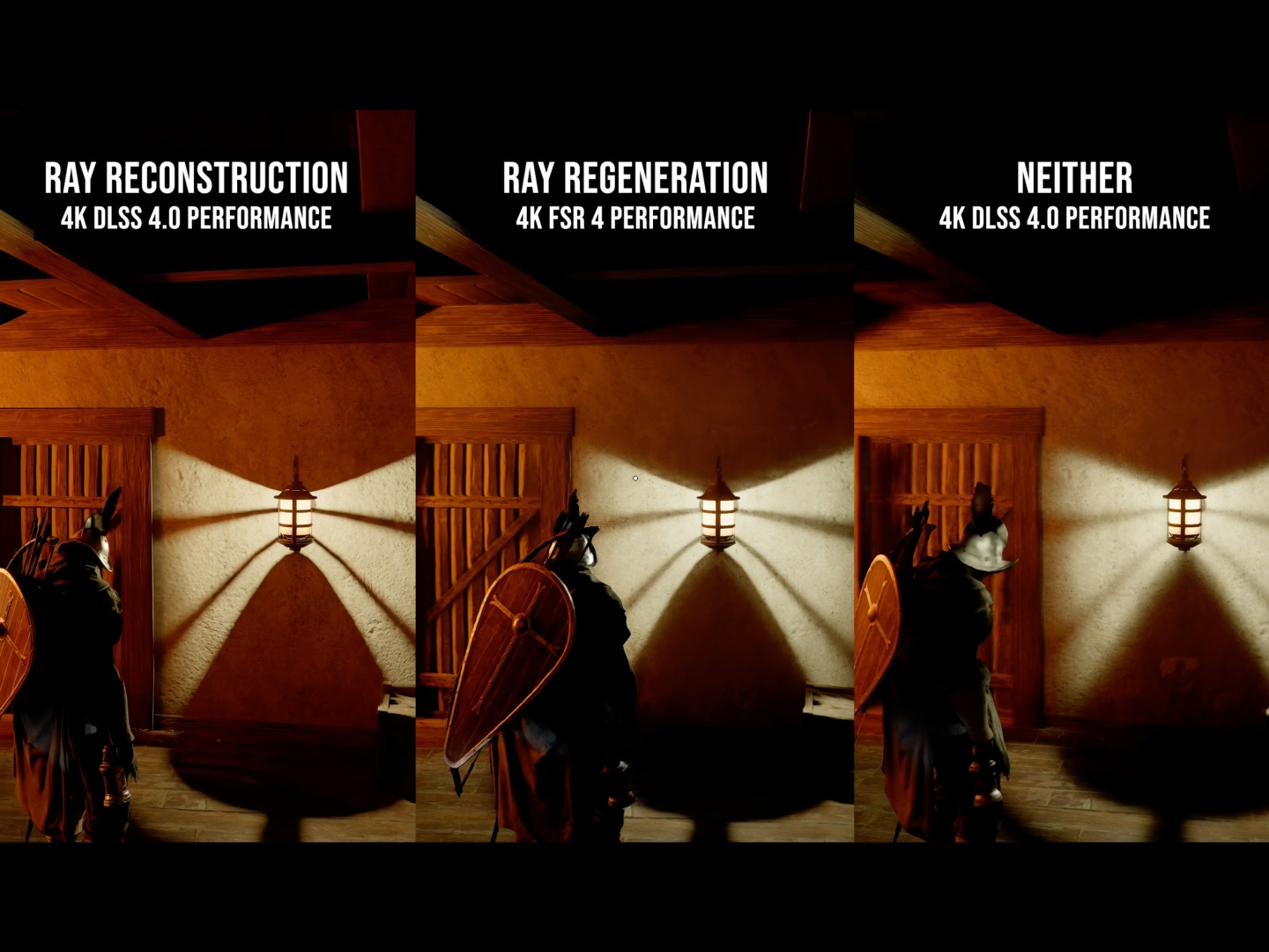 Işıklandırmayı 'Max' ayarına getirmenin gürültüyü daha da kötüleştirdiğini buldular, bu nedenle 'Cinematic' veya 'Ultra' önerilir. İlginç bir şekilde, DLSS 4.0 gürültüyü azaltmada DLSS 4.5'ten daha iyi çalışıyor. Hardware Unboxed'a göre, aydınlatma için örnek sayısı çıktı çözünürlüğüne değil render çözünürlüğüne bağlı olduğundan, bazı durumlarda DLSS kullanarak yükseltme yapmak daha fazla gürültü yaratır. DLAA veya DLSS Kalite modunu kullanarak oyunu doğal veya doğal çözünürlüğe yakın çözünürlükte çalıştırmak daha iyidir.