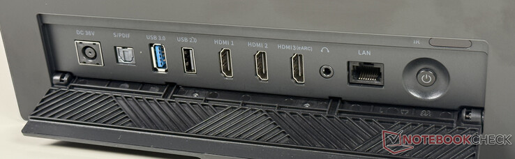 VisionMaster Max, harici ses çözümlerini bağlamak için bir dizi bağlantı sunar. Üçüncü HDMI bağlantı noktasındaki eARC'ye ek olarak, S/PDIF başka bir dijital ses arabirimidir. Örneğin kulaklıklar için 3,5 mm jak bağlantısı, bunların Bluetooth 5.2 aracılığıyla kablosuz olarak bağlanmaması veya bağlanamaması durumunda bağlantı donanmasını tamamlar.