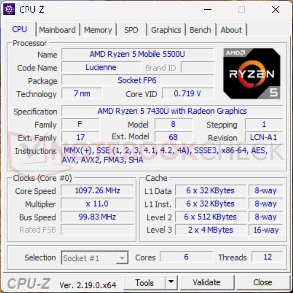 Prosedür önceki testlerimizden aşinadır: BIOS veya Görev Yöneticisi işlemci olarak 7430U'yu listelese de, işlemcinin üzerine damgalanmış OPN numarası gerçek işlemcinin kimliğini ortaya koymaktadır: 100-000000375 - daha önce incelenen Chuwi modellerinde olduğu gibi açıkça Ryzen 5 5500U - reklamı yapılan ve daha güçlü Ryzen 5 7430U'nun aksine.