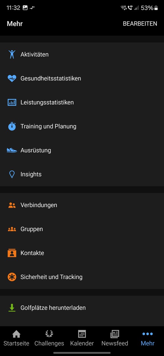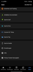 Garmin Connect net bir arayüze sahiptir ancak çok sayıda alt menü kullanır. Çeşitli sağlık verilerine ve son 7 günün ve bir önceki günün özetine bağlantılar içeren bir başlangıç sayfası vardır. Uygulama ayrıca takvime, meydan okumalara ve bir haber kaynağına erişim sunuyor. Bireysel ayarlar "Daha Fazla" altında listelenmiştir.