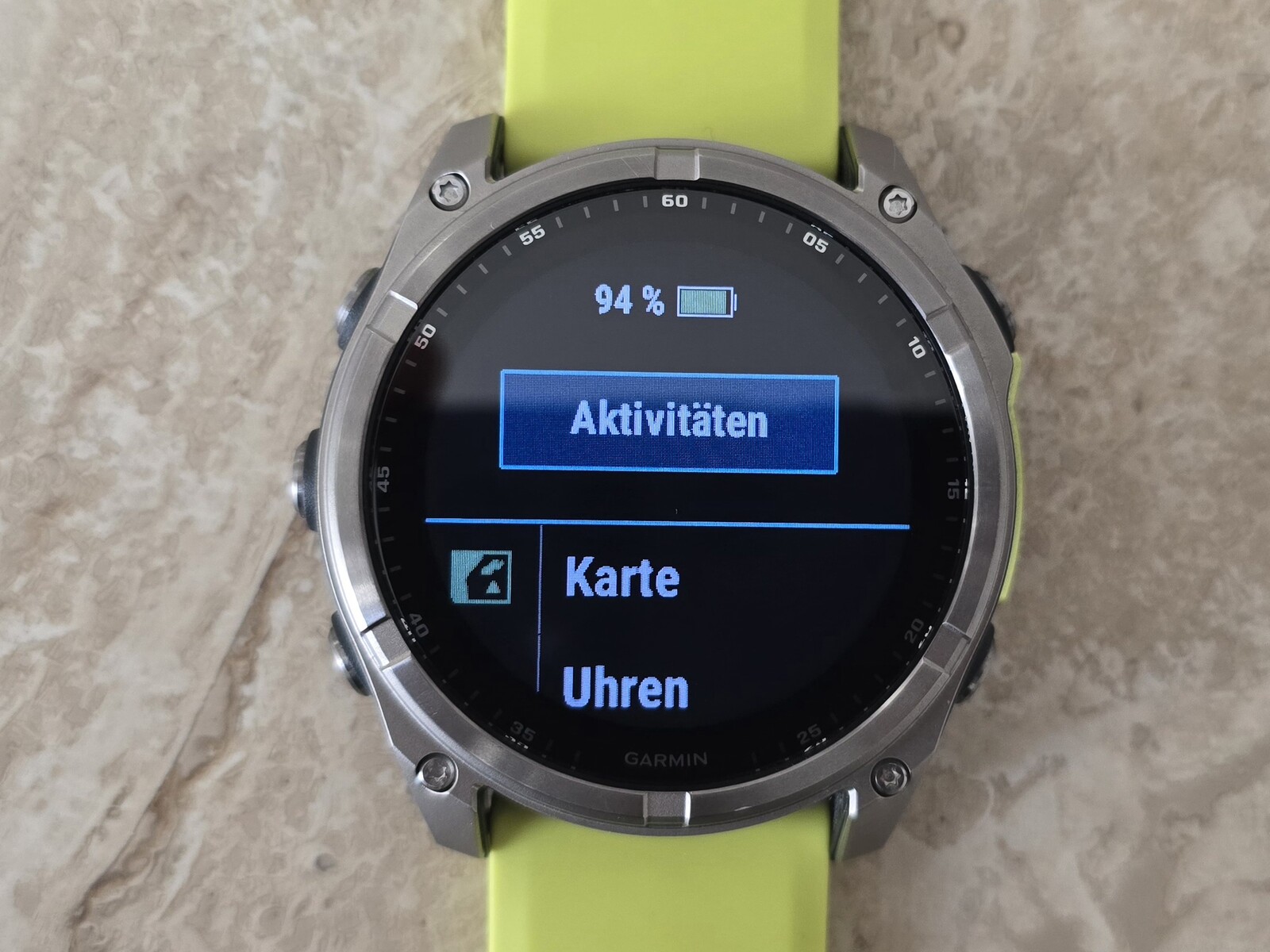 AMOLED panelli versiyonlarda, dayanıklı safir cam da Corning Gorilla Glass ile değiştirilebilir (RRP 1.000 Euro'dan itibaren). OLED ekranlı Fenix 8 daha canlı renkler ve daha yumuşak görüntü değişimleri gösterirken, MiP ekran daha az güç tüketiyor. Garmin bize test cihazı olarak en büyük versiyonda MiP ekrana sahip versiyonu sağladı.