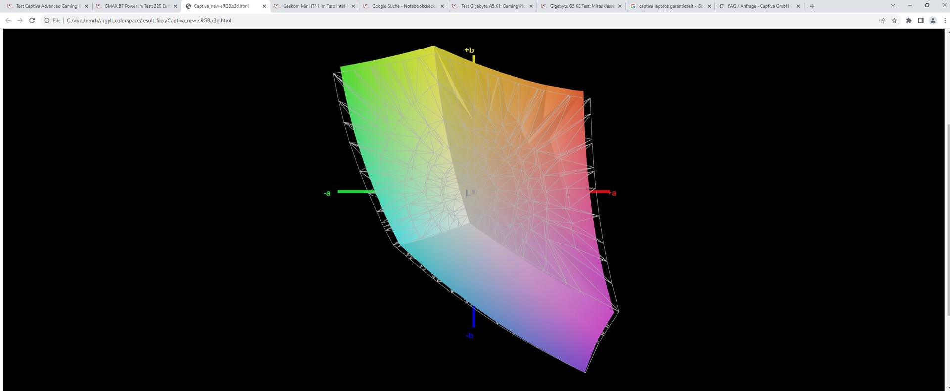 Captiva, dizüstü bilgisayara BOE'nin 144 Hz Full HD panelini yerleştirmiş. Aynı paneli Gigabyte A5 K1 içinde test ettik. Burada ekran biraz daha parlak (324'e karşı 281 nit) ancak buna karşılık siyah değeri ve kontrastı biraz daha zayıf. Yüzde 90'lık aydınlatması bile yeterli.