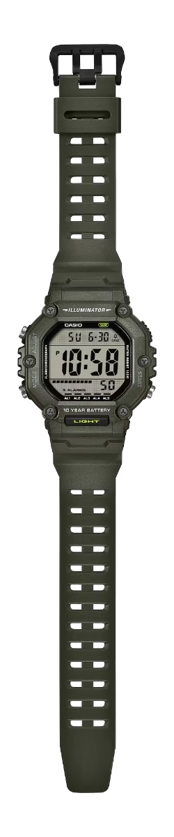 Casio AE-1600HX-3AV, 54,1 x 49,7 x 15,9 mm (~1,78 x 1,96 x 0,63 inç) ölçülerinde büyük boy koyu zeytin yeşili reçine kasaya sahip ve açık renkli arka plana sahip büyük bir LCD'yi çevreliyor. Model numarasındaki "X", görünüşe göre ekstra uzun kayışına atıfta bulunuyor. Şirket tam bir uzunluk vermese de, bir pazarlama görseli (aşağıda) eski AE-1600H-1AV'deki kayışa kıyasla ek uzunluğu göstermektedir. Ralli kayışının bir diğer farkı da daha güvenli bir uyum için yan yana deliklere sahip olması.