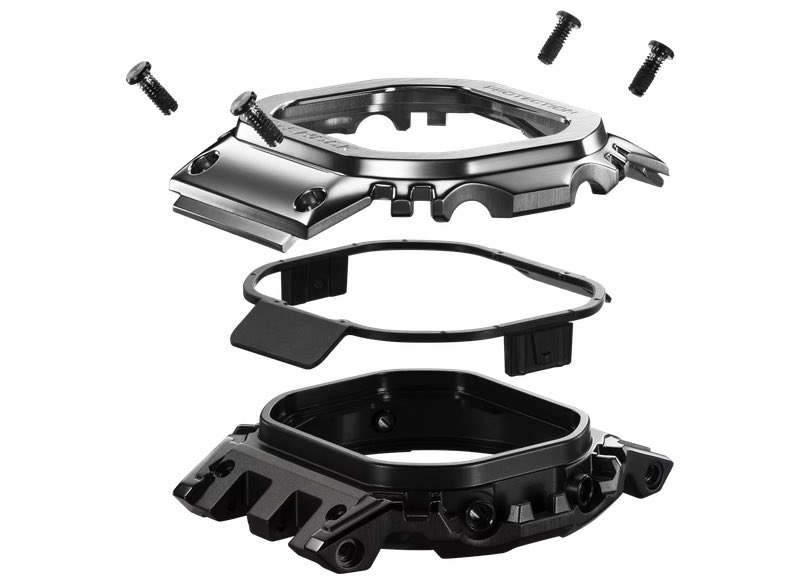 Casio, saatin 40 yıllık darbeye dayanıklılık verilerinden yararlanılarak yapay zekanın yardımıyla tasarlandığını söylüyor. Metal çerçevenin orta kasayı tamamen kapladığı önceki tam metal G-Shock'ların aksine, Casio'nun yeni tasarladığı yapı, çerçeveyi ve orta kasayı üstten ve alttan birbirine bağlarken, araya şokları emmek için geçici olarak deforme olan oldukça esnek bir reçine yerleştiriyor. Saat Japonya'da Yamagata Casio'da üretilmiştir.