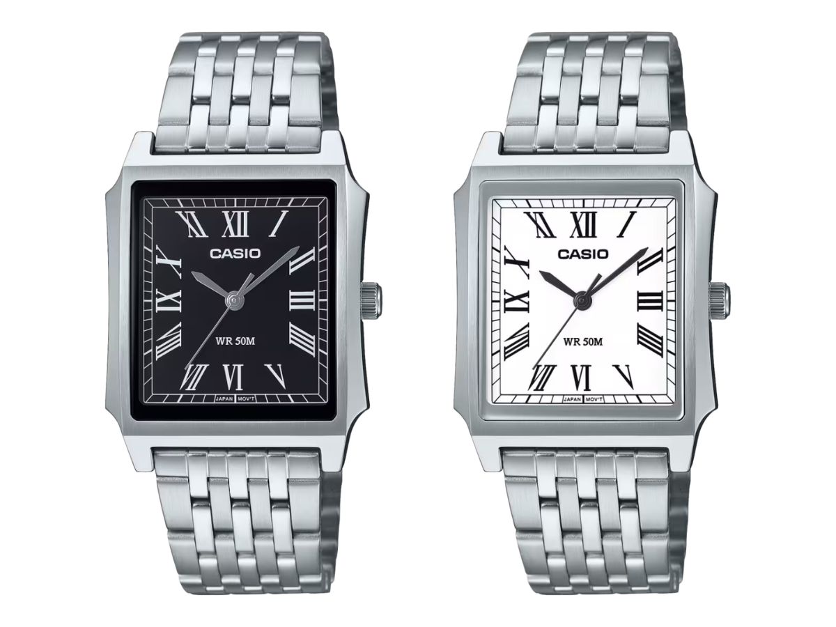 Casio'nun MTP-B190 saati paslanmaz çelik kasaya sahip tank tarzı bir analog saattir. Her ay 20 saniye içinde doğru kalması gereken üç ibresi vardır. Ayrıca, 50 m'ye kadar suya dayanıklı olduğu ve SR626SW piliyle yaklaşık üç yıl çalışacağı söyleniyor. Bu klasik model 41.0 x 31.5 x 8.1 mm (~1.61 x 1.24 x 0.32 inç) ölçülerindedir.