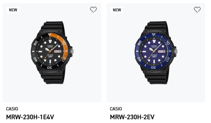 Casio uluslararası web sitesinde iki saati daha resmi olarak listeledi: MRW-230H-1E4V ve MRW-230H-2EV. Bu, daha önceki perakendeci gözlemlerini doğrulamaktadır. Bu modellerde uluslararası perakende listelerinde çoktan yer aldı Bello aracılığıylabu nedenle Casio'nun küresel platformundaki ilk resmi varlığıdır.