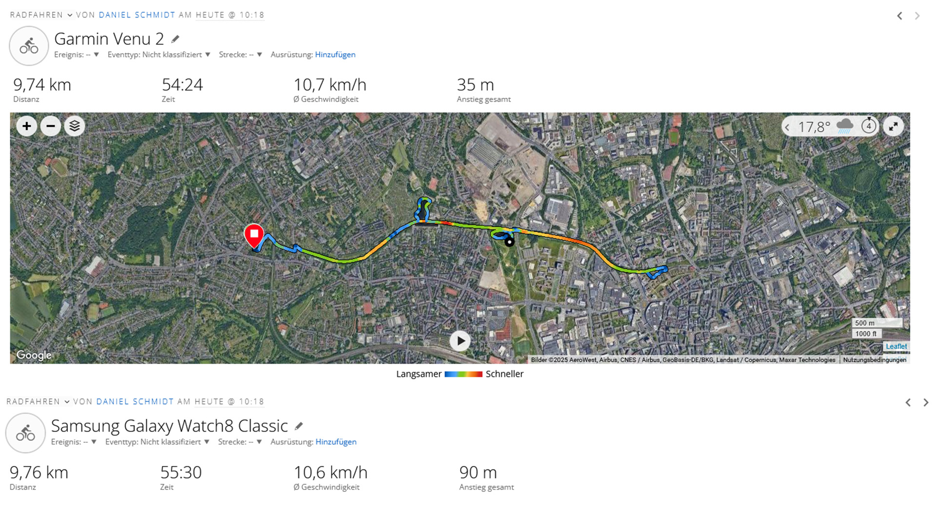 Galaxy Watch8 Classic tüm büyük uydu sistemlerini destekler. Rotalar, örneğin eğitim oturumları için dışa ve içe aktarılabilir. Google Maps önceden yüklenmiş olarak geliyor ve navigasyon güvenilir bir şekilde çalışıyor.