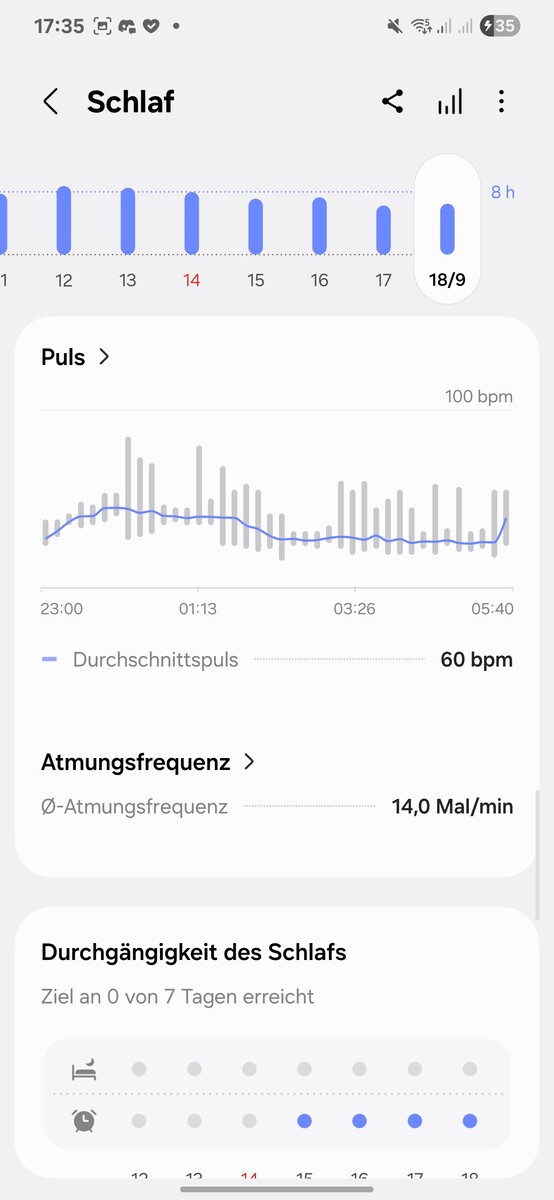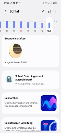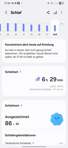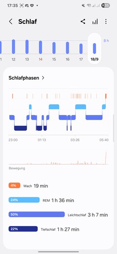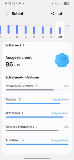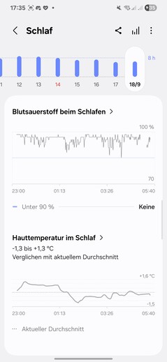 Samsung, dinlenmeyi izlemek için bir Uyku Puanı sistemi kullanıyor. Toplam uyku süresi, derin ve REM evreleri, toparlanma ve gecikme gibi ölçümleri bir araya getiren bu sistem, kişiselleştirilmiş öneriler ve uzun vadeli trendlerle destekleniyor. Saat ayrıca kalp atış hızı, sıcaklık, oksijen doygunluğu ve nefes alma hızını da kaydediyor. Akıllı saat bir akıllı telefon ile eşleştirildiğinde horlama ve uyku apnesi tespit edilebiliyor.