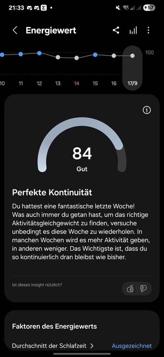 Yeni eklenen Enerji Puanı, uyku ve aktivite verilerinden hesaplanarak genel günlük performans hakkında fikir veriyor. Kişiselleştirilmiş değerlendirmeler ve öneriler ile tamamlanmaktadır.