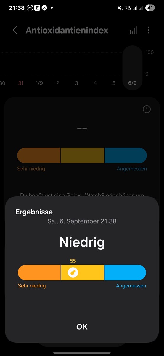 Kan basıncı Galaxy Watch8 Classic ile de ölçülebilir, ancak yalnızca harici bir cihazla kalibrasyon yapıldıktan sonra. Bu durumda, referans olarak Braun ExactFit 5 Connect'i kullandık. Üç ölçümden elde edilen ortalama sapma sistolik değer için %0,29 ve diyastolik değer için %3,65 idi ve bir testte maksimum sapma 3 mmHg idi.