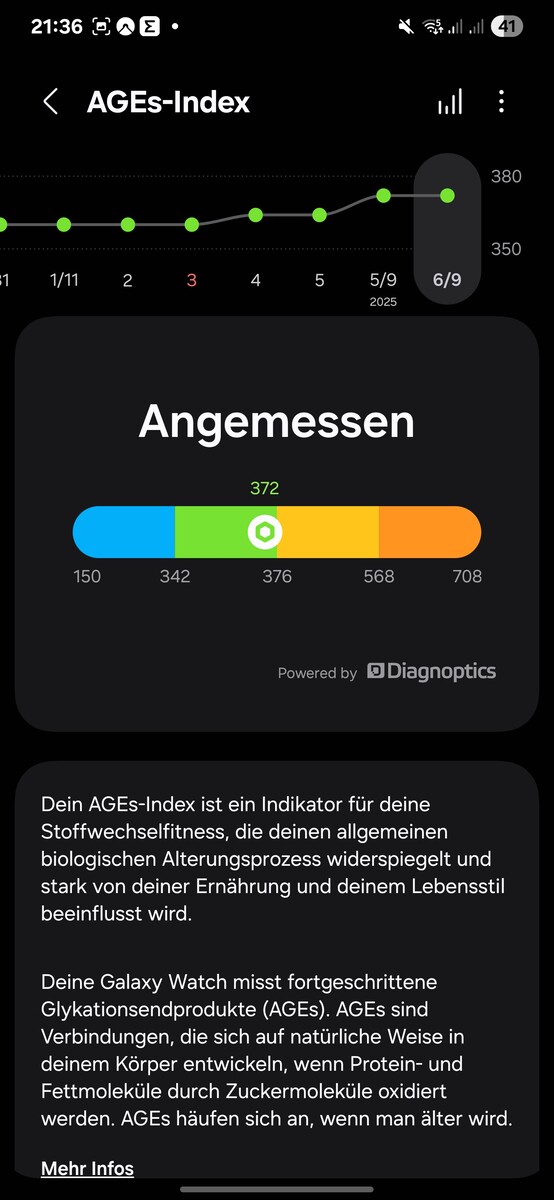 Ayrıca metabolik zindeliği değerlendirmek için AGEs Endeksi de yeni bir özellik. Bu metrik antioksidanlar, vasküler yük ve vücut kompozisyonu ile ilgili ölçümleri içerir.