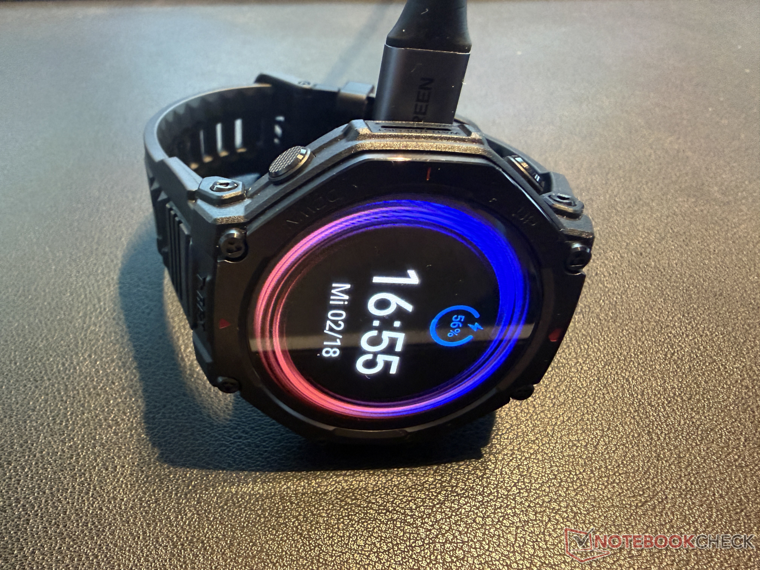 Açık hava aktiviteleri arttıkça pil ömrü de buna bağlı olarak azalır, ancak normal kullanımda en az bir hafta olmalıdır. Amazfit T-Rex 3 Pro bu nedenle oldukça dayanıklıdır ve yalnızca ara sıra şarj molası gerektirir. Akıllı saatin arkasına manyetik olarak takılan birlikte verilen şarj adaptörü bu amaçla kullanılıyor. Yarım saat sonra yüzde 50'nin biraz altına ulaşılmış oluyor. Yüzde 0'dan yüzde 100'e kadar tüm şarj işlemi 90 dakikadan kısa bir sürede tamamlanıyor.