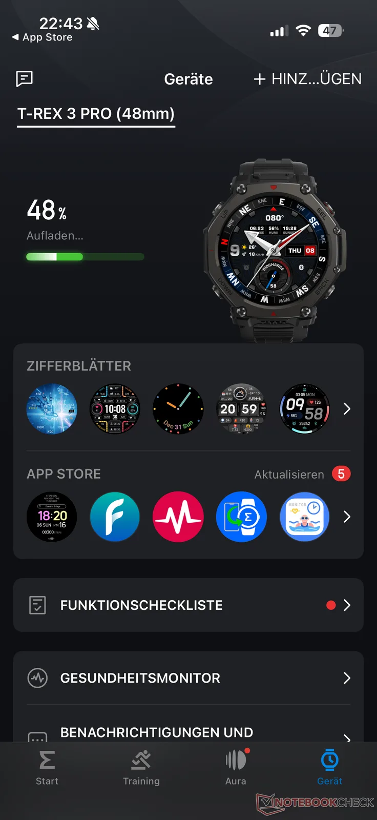 Test sırasında Amazfit T-Rex 3 Pro'yu kurarken şikayet edilecek hiçbir şey yoktu. Akıllı telefonla bağlantı kurmak için Zepp uygulaması Android veya iOS gereklidir. Ücretsiz olarak kaydolduktan veya mevcut bir hesapta oturum açtıktan sonra, giyilebilir cihaz sadece birkaç adımda bağlanabilir.