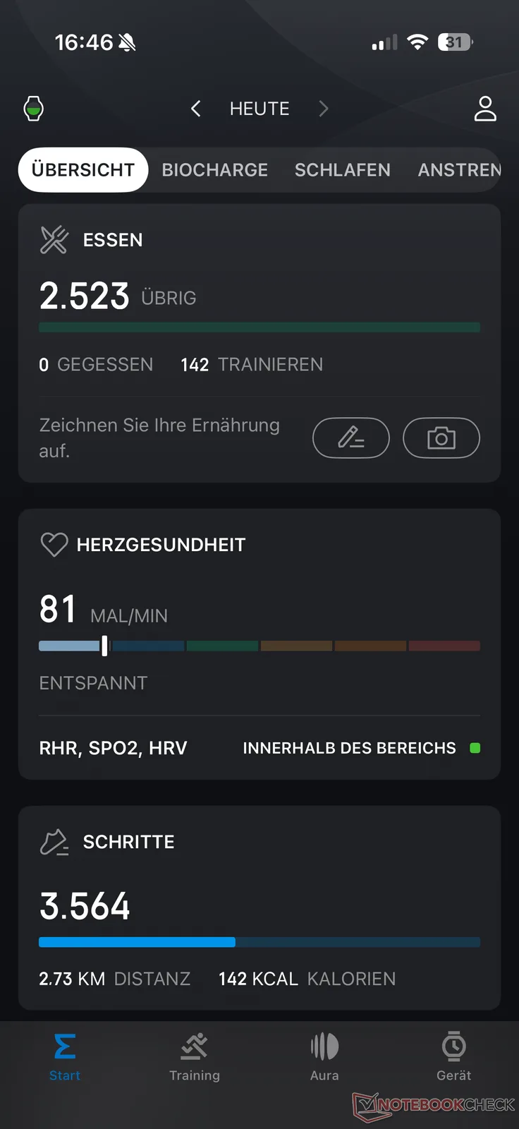 Zepp uygulamasının odak noktası BioCharge seviyesidir. Bu, kullanıcının günlük performansı hakkında bir fikir vermeyi amaçlıyor ve diğer şeylerin yanı sıra uyku kalitesi ve stresi de hesaba katıyor. Veriler Google Fit, Apple Health, Strava, adidas Running ve daha fazlası gibi üçüncü taraf uygulamalarla senkronize edilebilir.