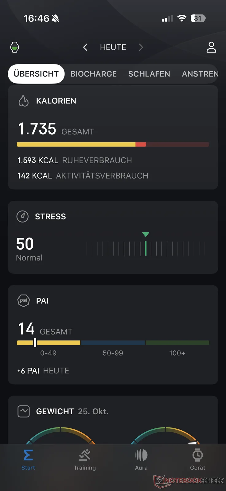 PAI değeri olarak adlandırılan bir değer de vardır. Bu, diğer şeylerin yanı sıra kalp atış hızı verilerine dayanan fizyolojik aktivitenin bir değerlendirmesidir. Değer, son 7 günün faaliyetlerine genel bir bakış sağlar ve üreticiye göre ideal olarak 100 puanın üzerinde olmalıdır.