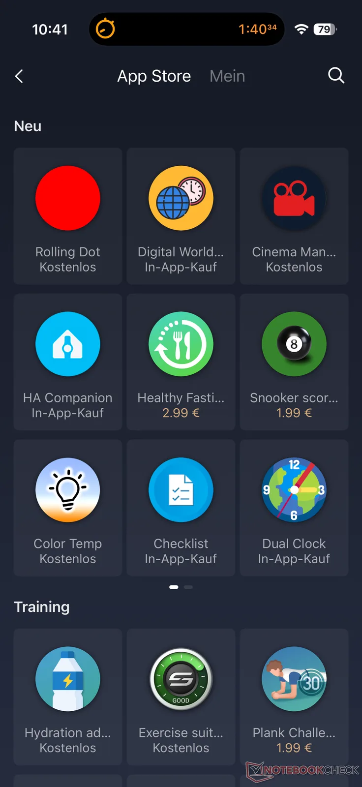 Sağlık izleme, bildirimler ve cihaz ayarları ile ilgili çeşitli ayarlar Zepp uygulaması üzerinden yapılabilir. Çok çeşitli ücretsiz ve ücretli saat yüzlerine ek olarak, kendi uygulama mağazasına da sahiptir. Bu, ek işlevlerle genişletmek için akıllı saate ek (bazen ücretli) uygulamalar yüklemek için kullanılabilir.