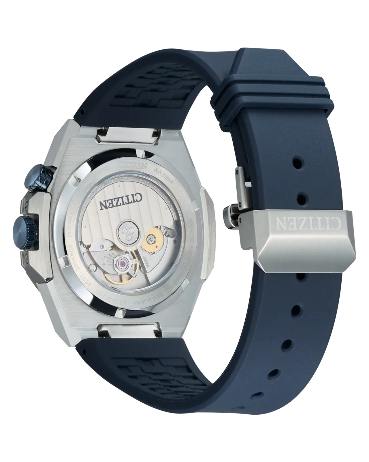 Çift yönlü dönen iç çerçeve başka bir görsel zevktir. Saat 2 konumundaki özel kurma kolu ile sorunsuzca çalıştırılabilir ve saatin spor-ileri karakterine katkıda bulunur. Ayrıca saat 3 konumunda gizli bir tarih penceresi de bulunur. Arka taraftaki safir sergi penceresi Citizen'in kendi üretimi olan Caliber 9051 otomatik mekanizmasını gösterir. Saatte 28.800 vph hızında çalışan bu mekanizma, 42 saatlik güç rezervine sahiptir ve 16.000 A/m'ye kadar manyetik direnç sunar.