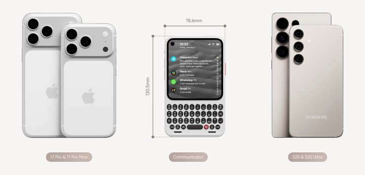 Clicks Communicator, Android 16 ile birlikte gelen ve Android 20'ye kadar güncelleme alacak şekilde ayarlanmış kompakt bir orta sınıf akıllı telefon. Neredeyse kare şeklindeki 4 inçlik dokunmatik ekranın altında dokunmaya duyarlı ve dolayısıyla trackpad olarak da işlev gören bir klavye yer alırken, boşluk çubuğunda bir parmak izi sensörü bulunuyor.
