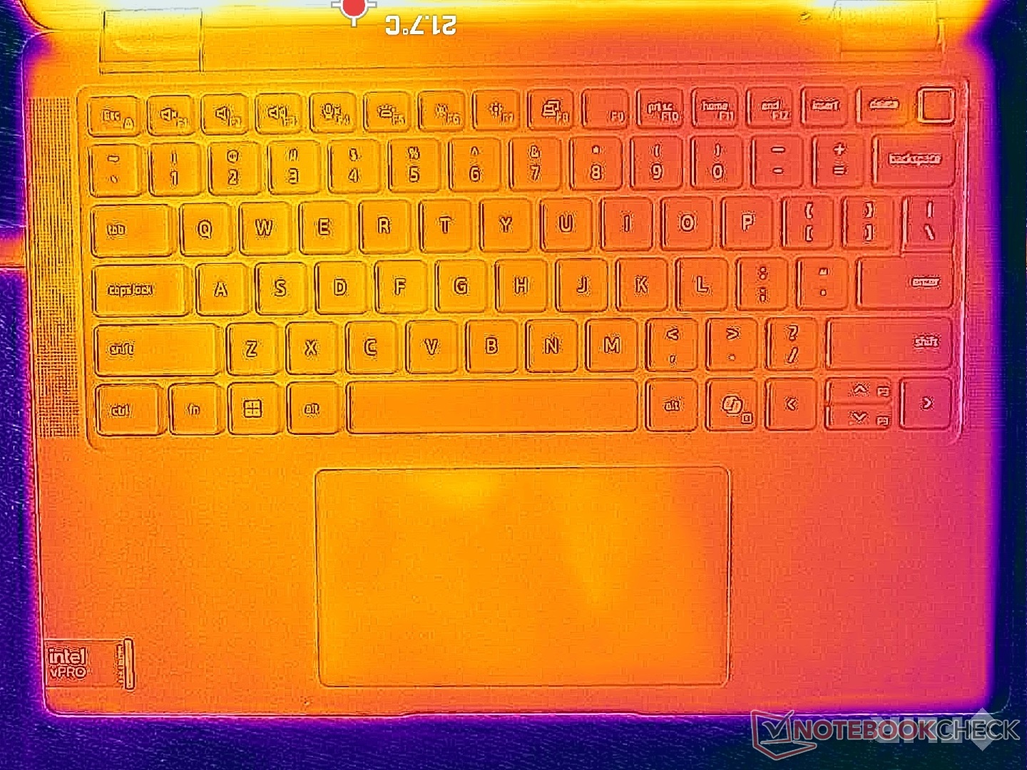 Altta yatan soğutma çözümü ve güç zarfı değişmediği için yüzey sıcaklıkları Latitude 7340 ile hemen hemen aynı kalmaktadır. Klavyenin sol yarısındaki sıcak noktalar 35 C'nin üzerine çıkabilirken, avuç içi dayanakları ve klavyenin sağ yarısı daha serin ve dokunması rahattır.