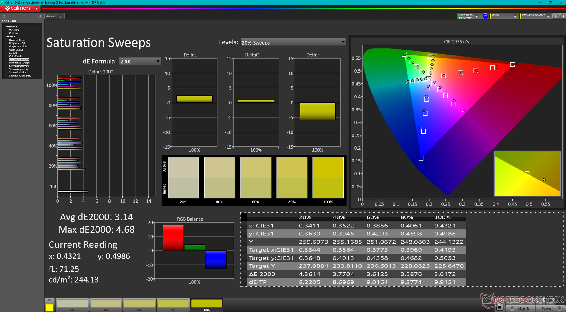 Ekran kutudan çıktığında renk sıcaklığı biraz fazla sıcak olduğundan önceden kalibre edilmiş olarak gelmiyor. Ekranı kendimiz kalibre edersek ortalama gri tonlama ve renk deltaE değerleri sırasıyla 3,4'ten 1,1'e ve 3,31'den 0,8'e yükselecektir. SRGB ekrandan daha fazlasını elde etmek için yukarıdaki kalibre edilmiş ICM profilimizi ücretsiz olarak denemenizi öneririz.