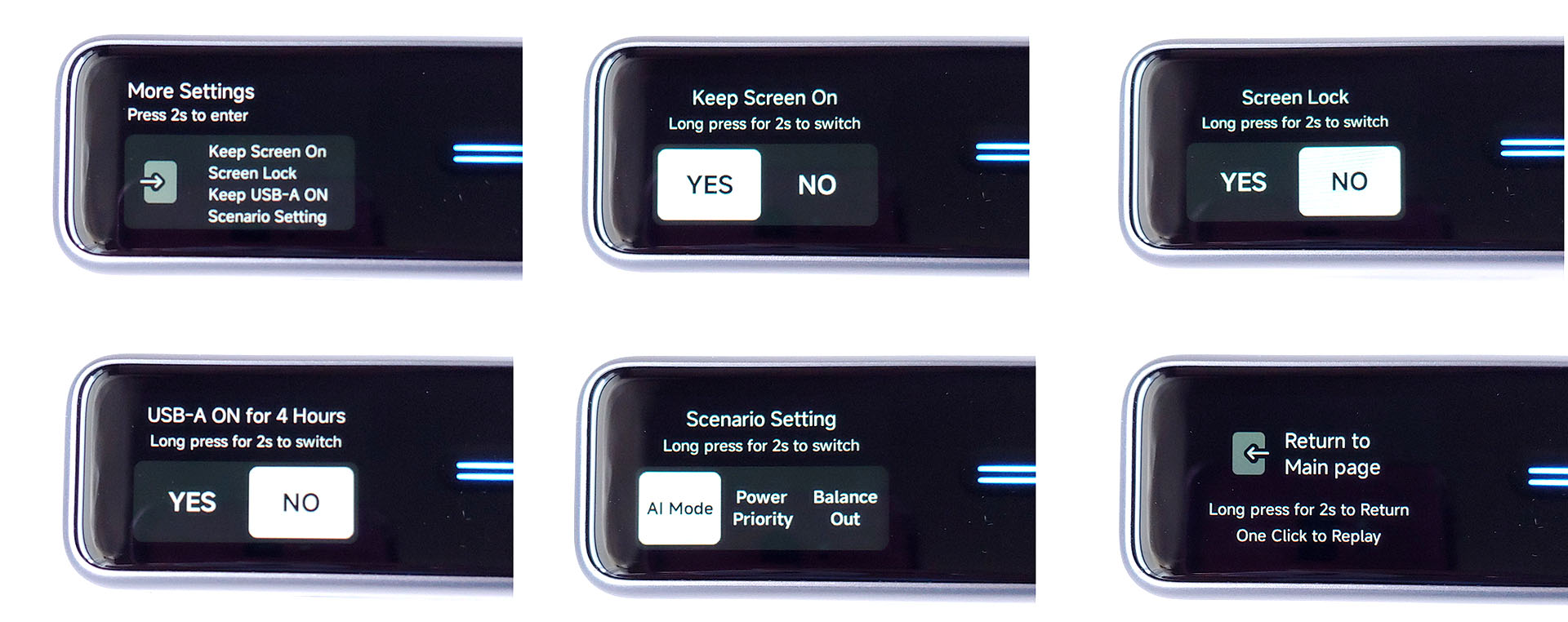 Ayarları görüntülerken, iki saniyelik bir basış her ayarın durumunu değiştirir. Dikkat edilmesi gereken ana ayar güç dağıtım modudur - AI, Güç Önceliği veya Dengeli.