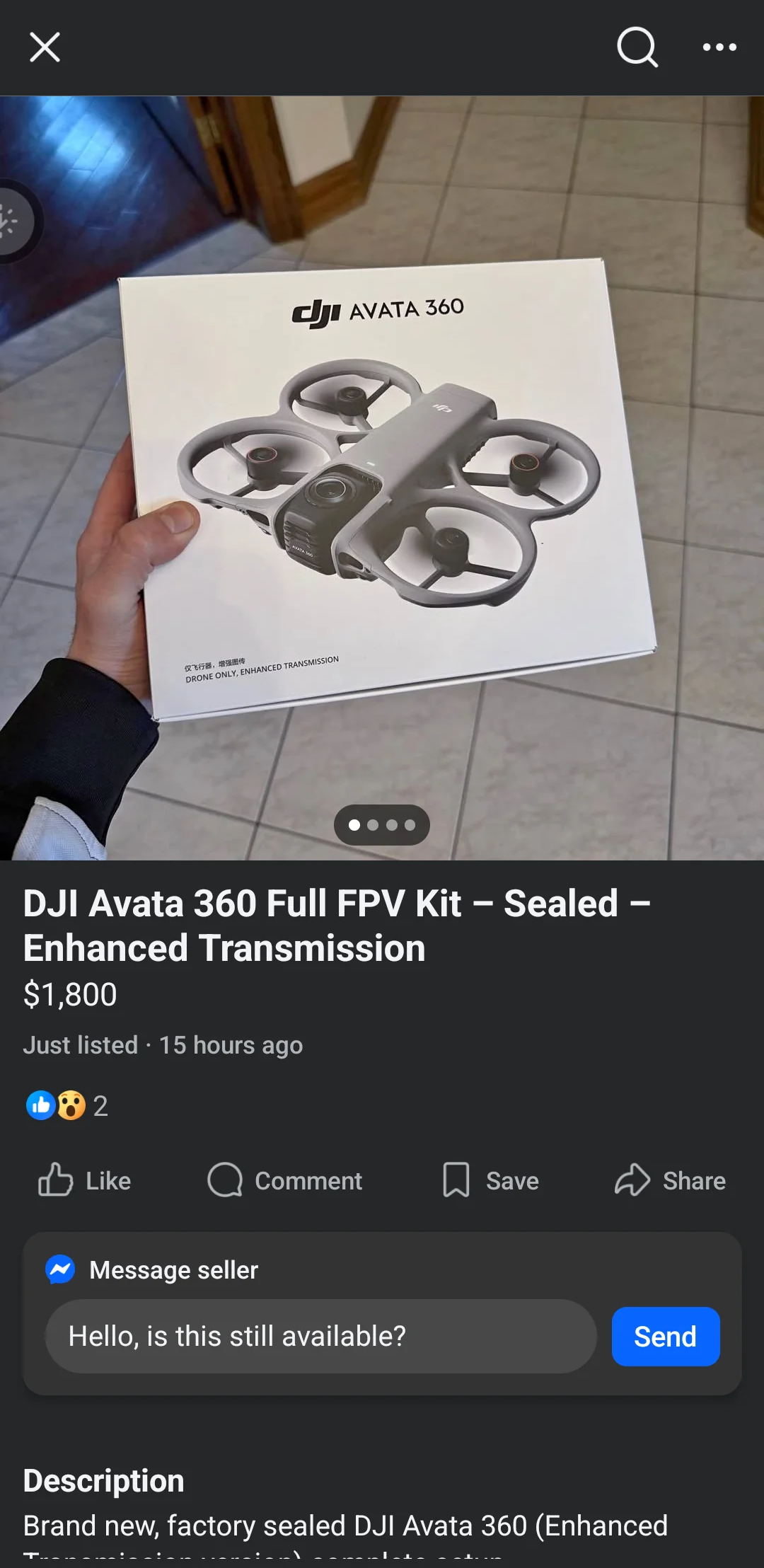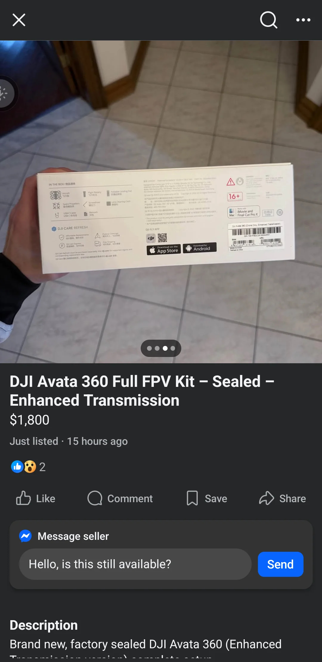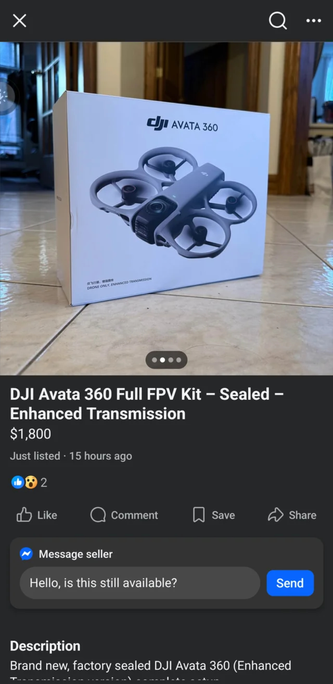 Öte yandan bir Redditor, Avata 360'ı Facebook Marketplace'te satan birini tespit etti. Facebook Marketplace drone'un kendisini göstermese de, sağlanan resimler Xdrones Studio'nun görüntüsünde görünen perakende kutu tasarımını doğruluyor. Şu anda Jasper Ellens gibi bilgi sızdıranlar Avata 360'ın önümüzdeki ay Çin'de piyasaya sürüleceğine inanıyor. Fiyatlandırmanın 2,988 CNY'den (~435$) başlayacağı söyleniyor; küresel bir lansman Nisan ayı başında gerçekleşebilir.