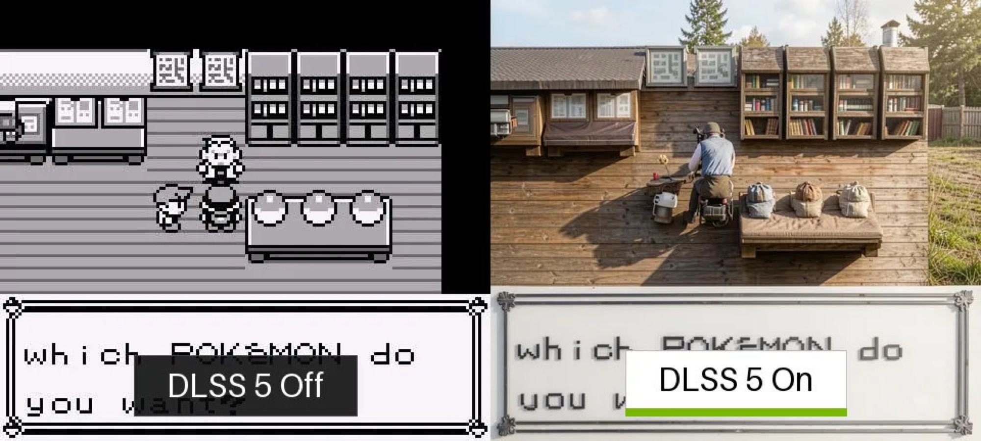 Kullanılan görüntü ne kadar gerçekçi olursa, DLSS 5'in sonucunun gösterdiği fark o kadar küçük olur. Ancak özellikle retro oyunlarda, sonuçlar tam da bir yapay zeka yeniden yapımının nasıl görüneceğini hayal ettiğiniz gibidir. Pokémon'un ilk neslinde, AI sonunda Nintendo'nun odalara duvar eklemeyi unuttuğunu ortaya çıkarırken, hem Pidgey hem de Pikachu muhtemelen kostümlü kedilerdir