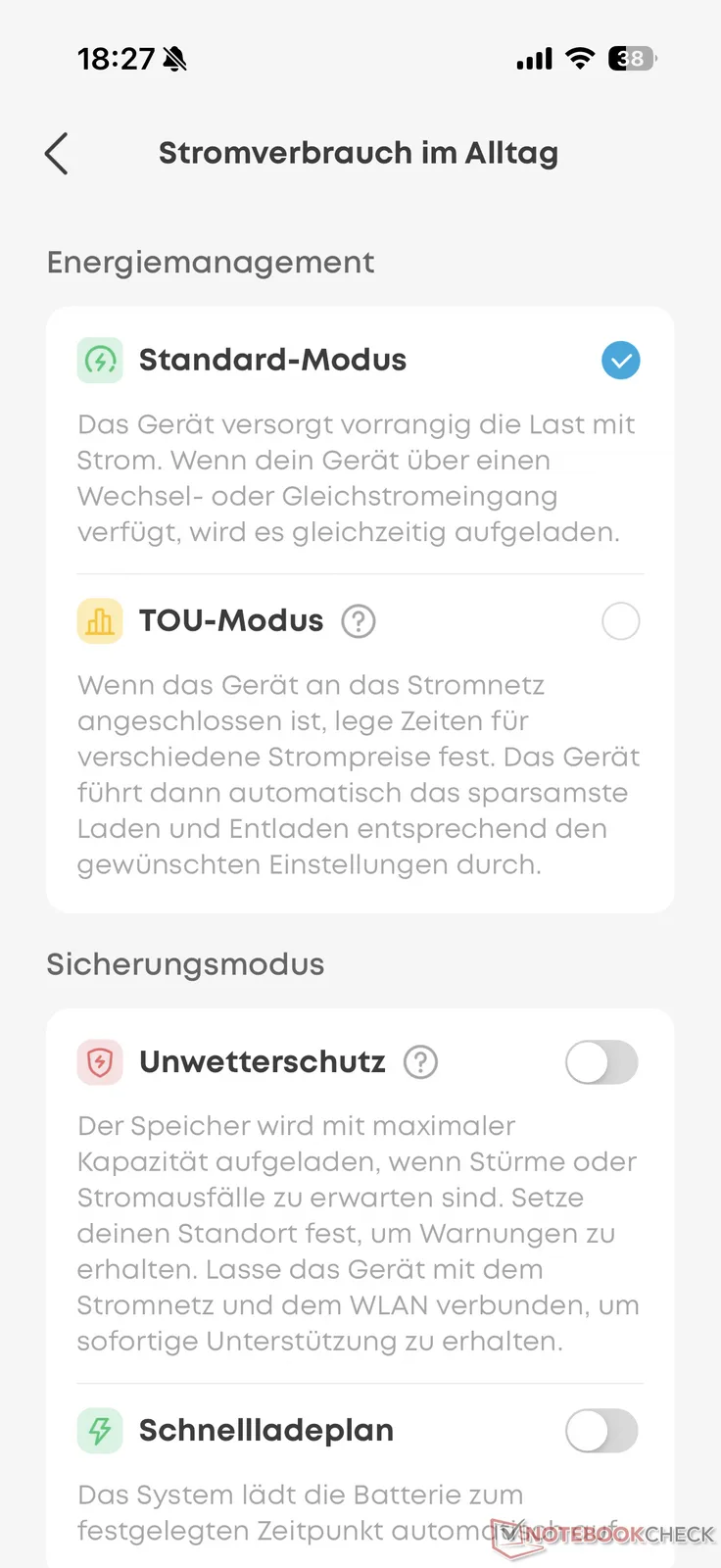 Bağlantının kurulması testte herhangi bir sorun olmadan çalıştı, böylece kurulum hiç zaman kaybetmeden tamamlandı. Anker uygulaması, çeşitli bağlantıları ve ekranı açıp kapatmanın yanı sıra farklı modlar seçmenize de olanak tanıyor. Örneğin TOU modunda, elektrik santrali daha uygun yoğun olmayan zamanlarda otomatik olarak şarj edilebilir. Ancak burada sadece farklı zamanları saklamak mümkündür ve dinamik elektrik tarifeleriyle doğrudan bir bağlantı yoktur (örneğin Anker Solix'ten balkon elektrik santralleri).