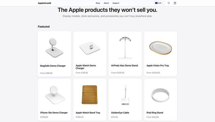 AppleSatılmadı hiçbir zaman tüketicilere satılmak üzere tasarlanmamış, bunun yerine Apple Mağazalarında ürünleri sunmak için kullanılan ürünleri sunan yeni bir çevrimiçi mağazadır. Mevcut parçalar arasında iPhone'lar için resmi MagSafe demo şarj cihazının yanı sıra Apple Watch'lar için muadili de yer alıyor.