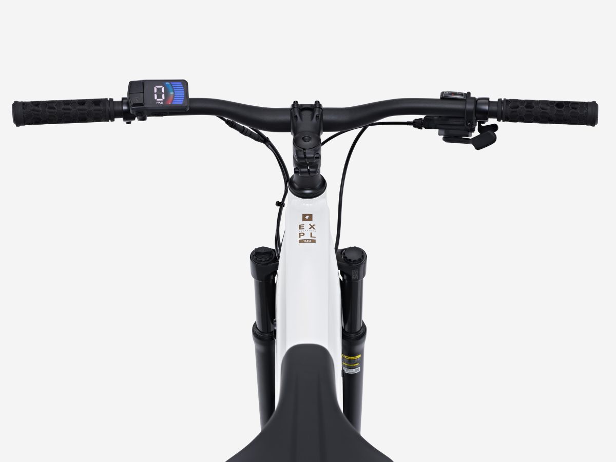 Decathlon'un Rockrider E-EXPL 100 modeli önde 180 mm ve arkada 160 mm olmak üzere mekanik disk frenlere sahipken, LTD modelinde çift pistonlu 180 mm hidrolik disk frenler bulunuyor. Ayrıca, her iki versiyonda da farklı üreticilere ait olsa da gidona monte edilmiş USB-C portu da içeren bir LED kontrolör bulunuyor. Her ikisi de Microshift RD-M25L X7 arka vites değiştiriciye ve 29 inç Kenda Booster K1227 lastiklere sahip 7 vitesli e-bisikletlerdir. Zoom süspansiyon çatalı (100 mm hareket mesafesi) ile alüminyum kadrolara sahiptirler ve orta boy E-EXPL 100 24,5 kg (~54,0 lbs) ağırlığındadır; orta boy E-EXPL 100 LTD ise yaklaşık 26,0 kg (~57,3 lbs) ağırlığındadır. Ayrıca LTD versiyonunun daha fazla aksesuara sahip olduğunu, her iki modelde de bulunan zil ve ışıklara çamurluk, bagaj rafı ve kickstand eklediğini belirtmek gerekir.